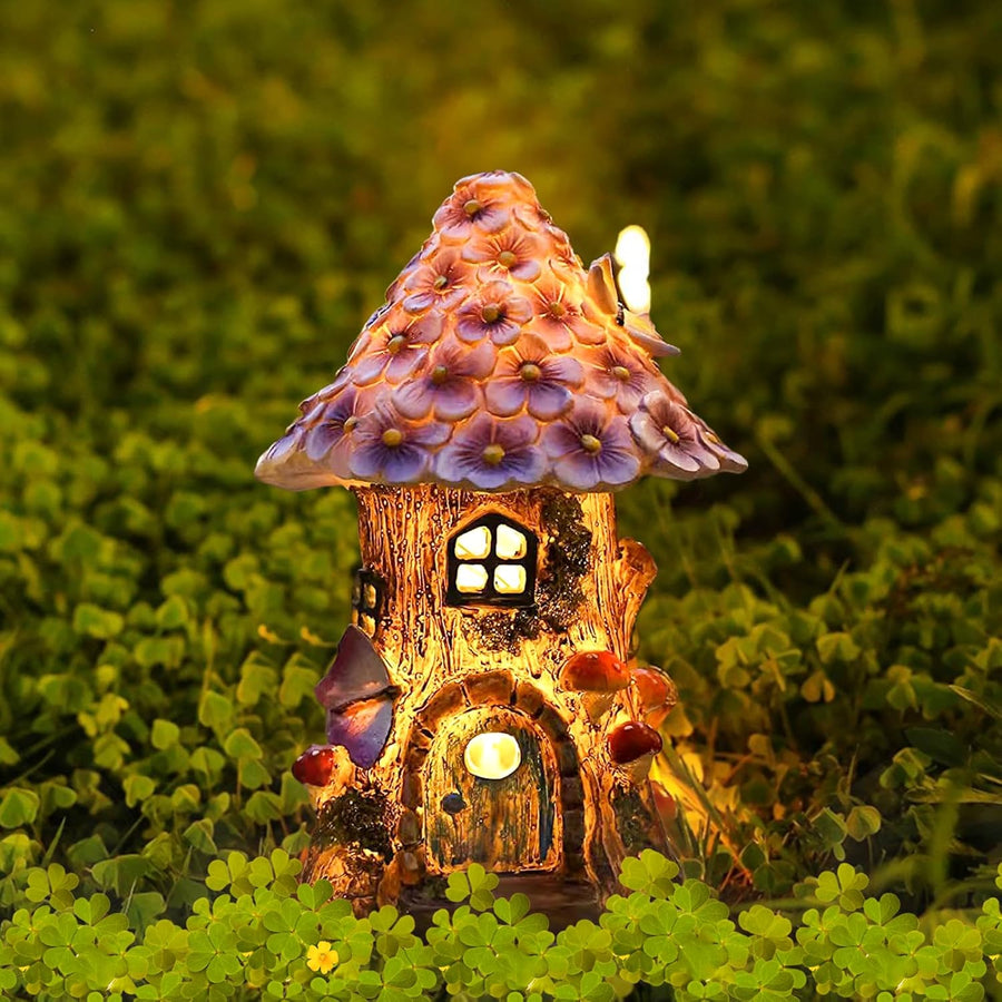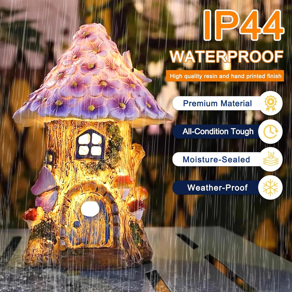 Syfunlv Solar Garden Decoration for Outdoors, Fairy Mushroom House for Outdoor Use, Made of Resin, I