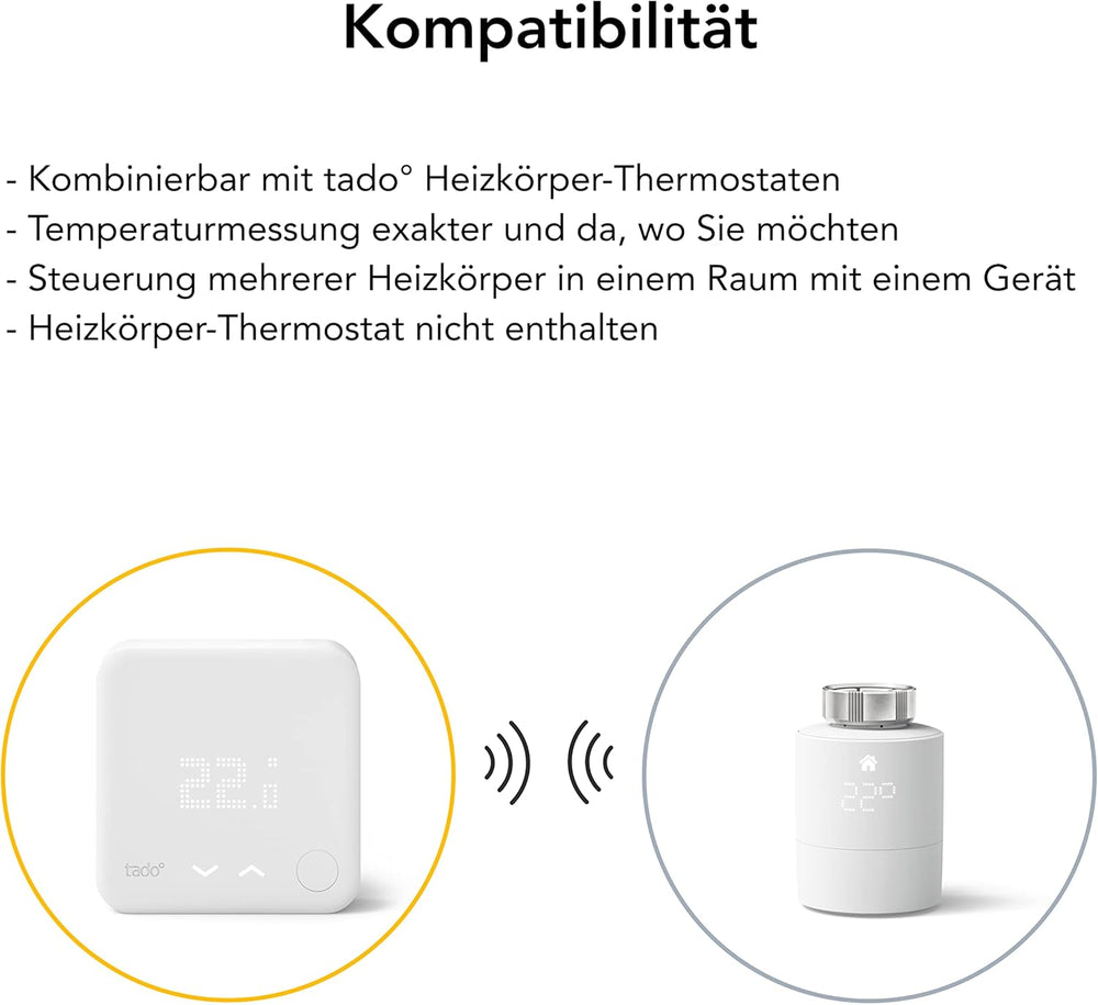 tado° Funk-Temperatursensor – Wifi Zusatzprodukt für smarte Heizkörperthermostate – digitale Raumtem