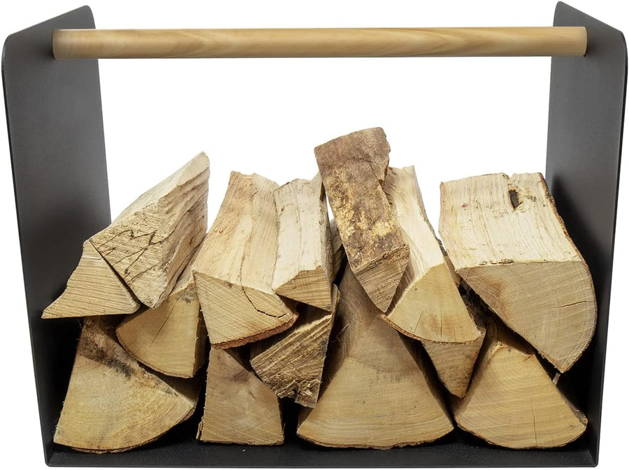 teileplus24 BHS1 Kaminholzregal Innen Aussen | Brennholzregal Metall | Kaminholzkorb mit Tragegriff