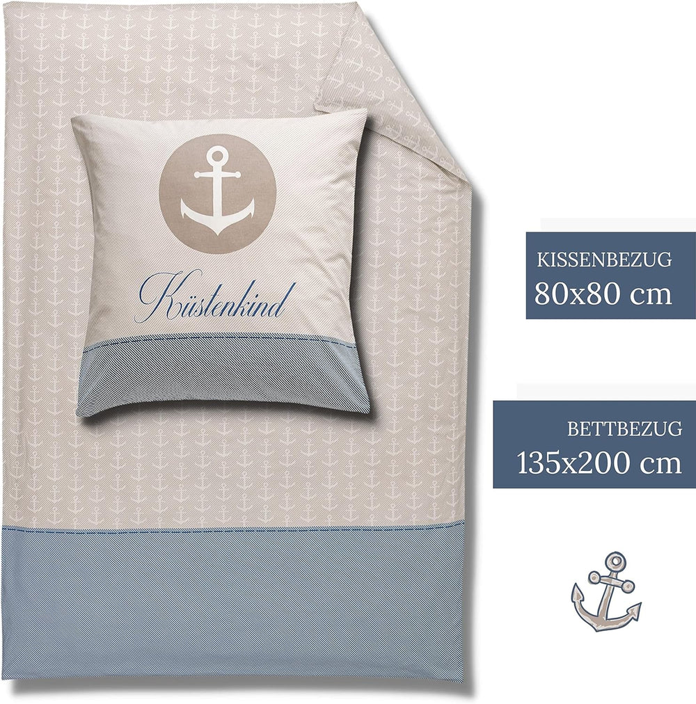 Anker Bettwäsche (2 - teilig 155x220) Küstenkind Bettwäsche-Set 80x80 + 155x220 cm in Übergrösse