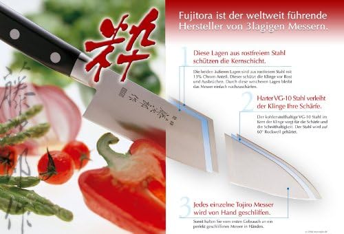 Fujitora FU-807 Kochmesser, 7,1 Zoll (180 mm), hergestellt in Japan, Kobaltlegierter Stahl, zweischn