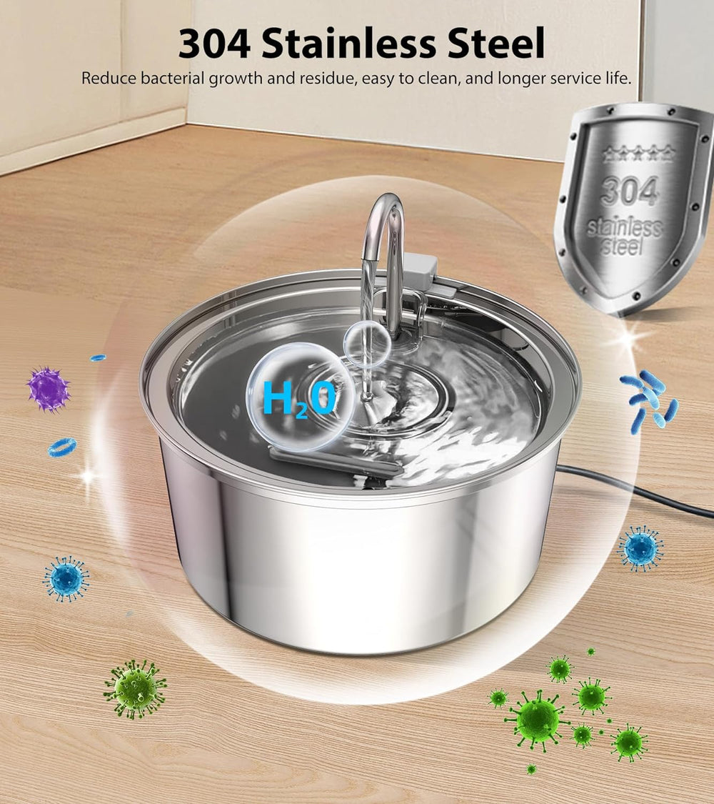 Tomxcute Katzenbrunnen Edelstahl Trinkbrunnen für Katze - 108oz/3.2L Ultra leise Wasserbrunnen für K