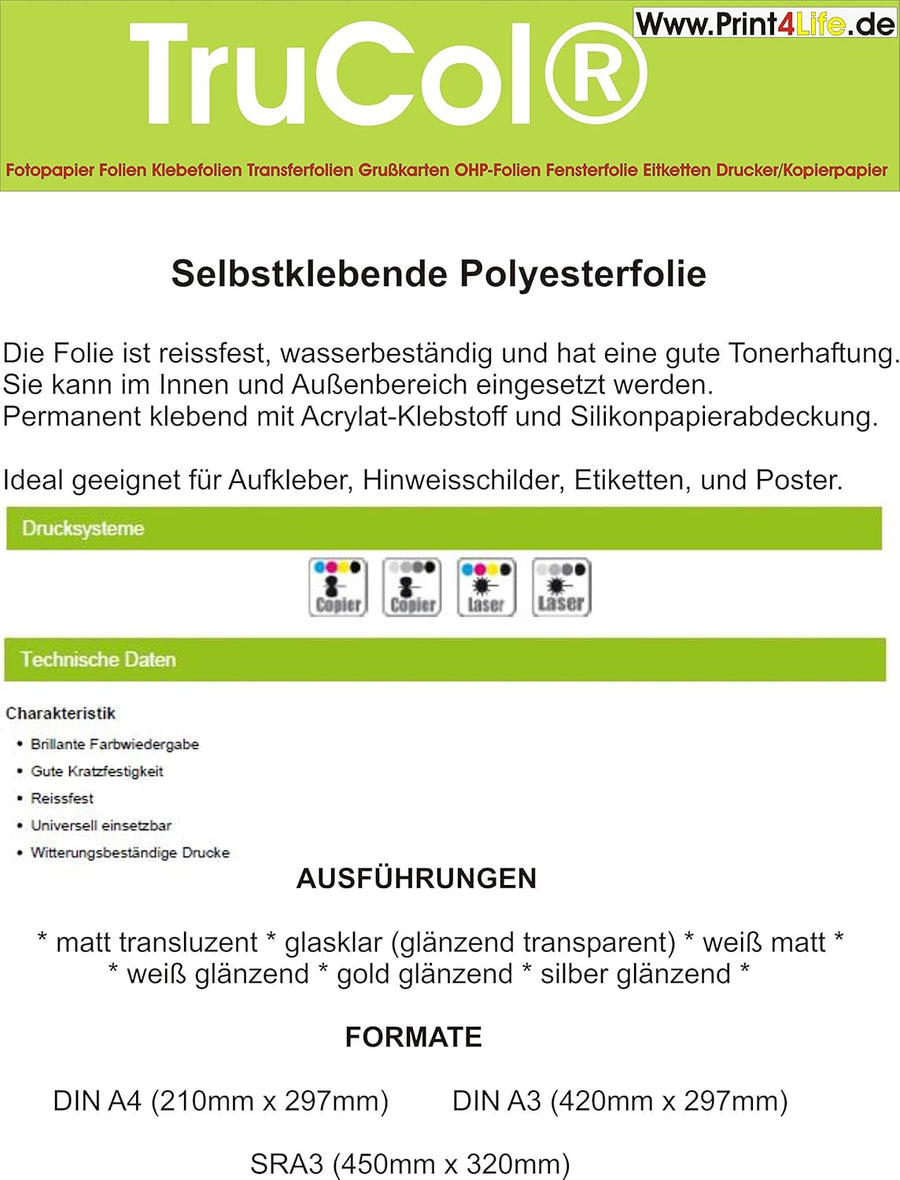 Klebefolie 10 x DIN A4 transluzent Matte - Druckerfolie, klebend, zum Bedrucken, Reissfest, Wetterfe