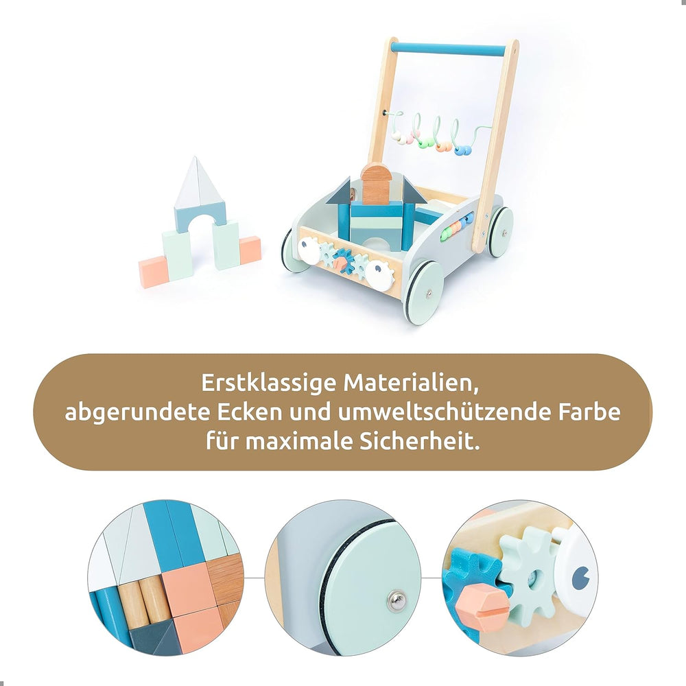 UMU® Holz 5-in-1 Lauflernwagen für Kleinkinder mit gummierten Rädern, Lauflernhilfe/Laufwagen für Ki