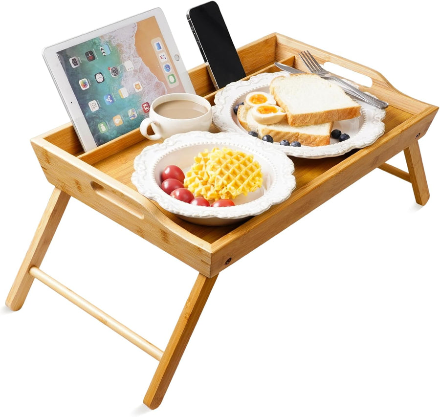 unycos - Betttablett Klappbar, Frühstückstablett mit Griff und Getränkehalter, Serviertisch, Ideal f