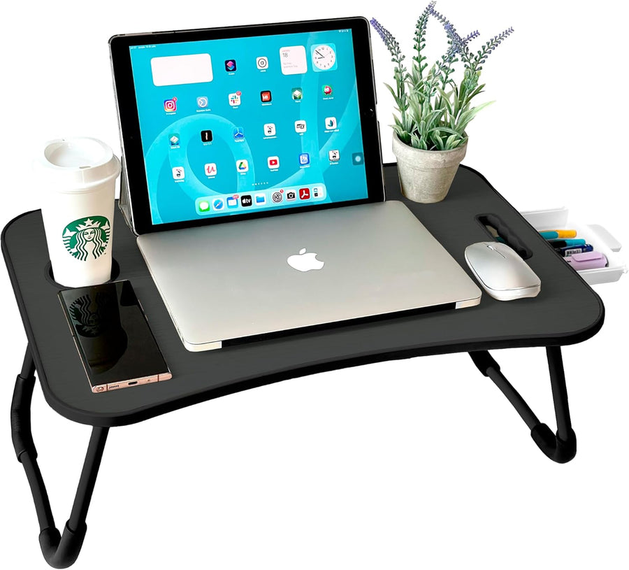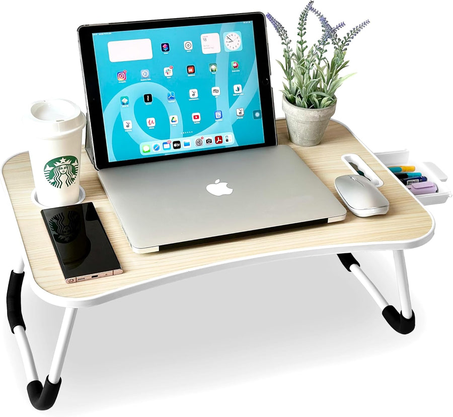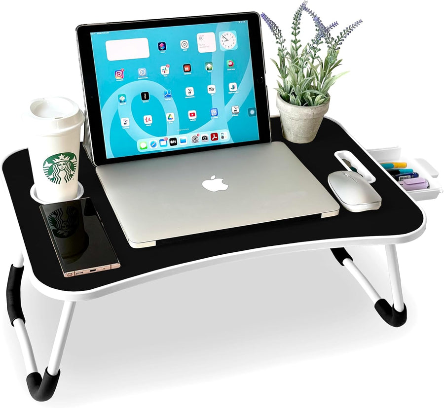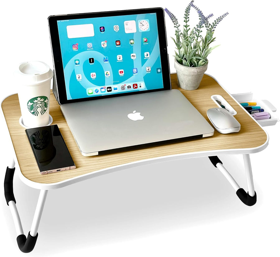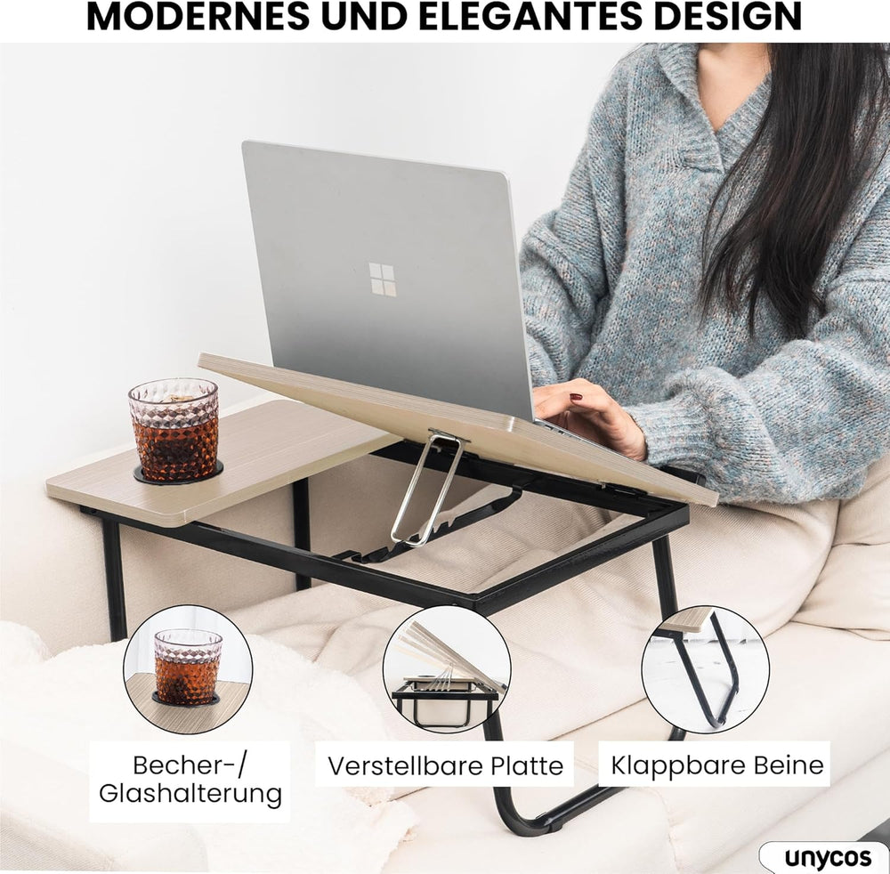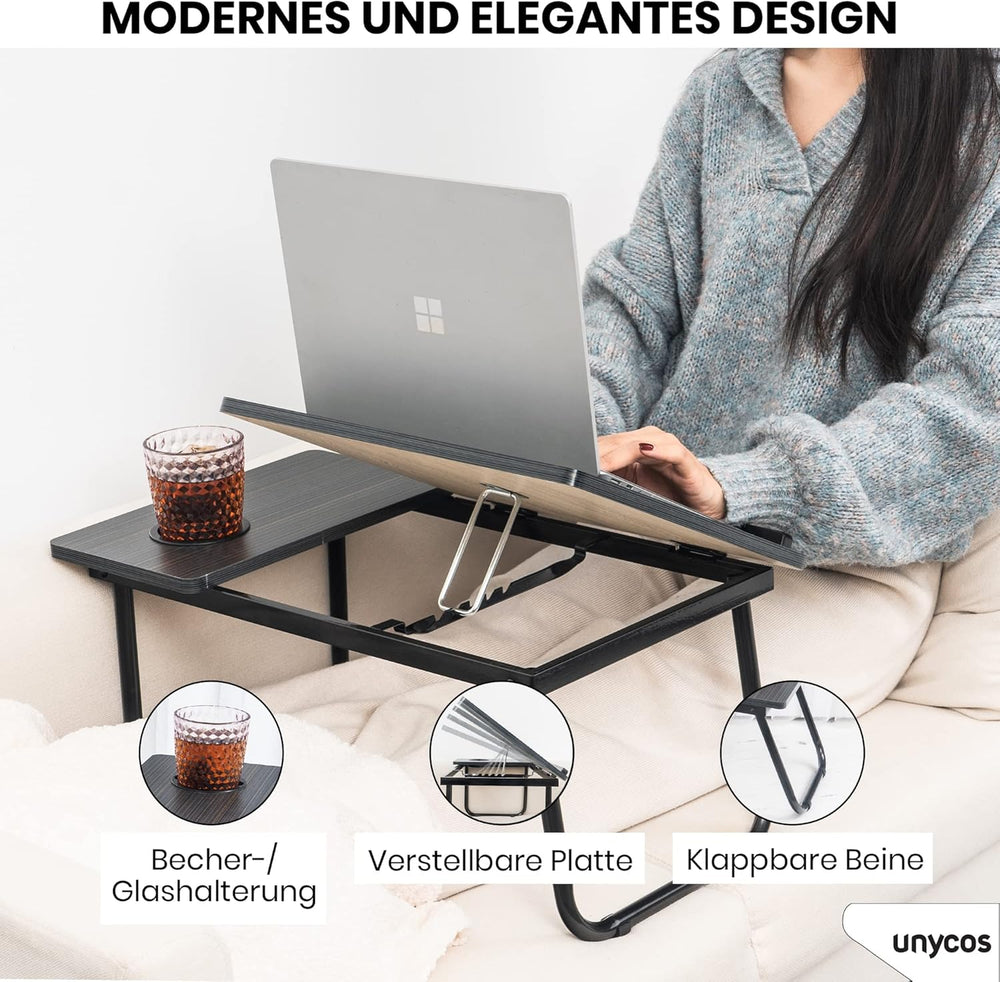 unycos - Laptoptisch, Betttablett Klappbar mit Höhenverstellbar und Cup Slot, Frühstückstablett, Lap