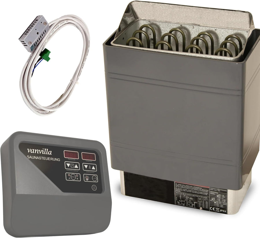 vanvilla Saunaofen 6 KW / 380V, Sauna Ofen inkl. Aussensteuerung