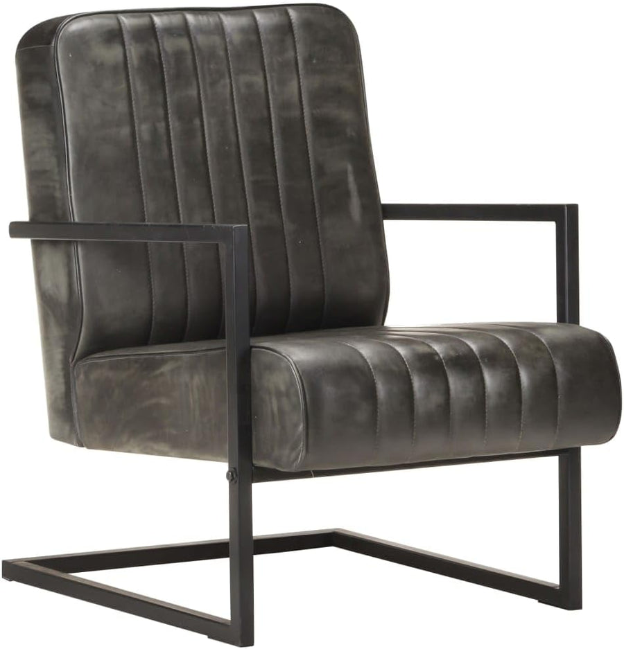 Bussandri Exclusive - Freischwinger Sessel Distressed Grau Echtleder