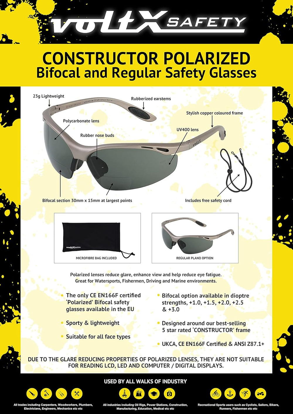 voltX 3 x Constructor' BIFOKALE Schutzbrille mit Lesehilfe (+2.5 Dioptrie klare, gelbe & polarisiert