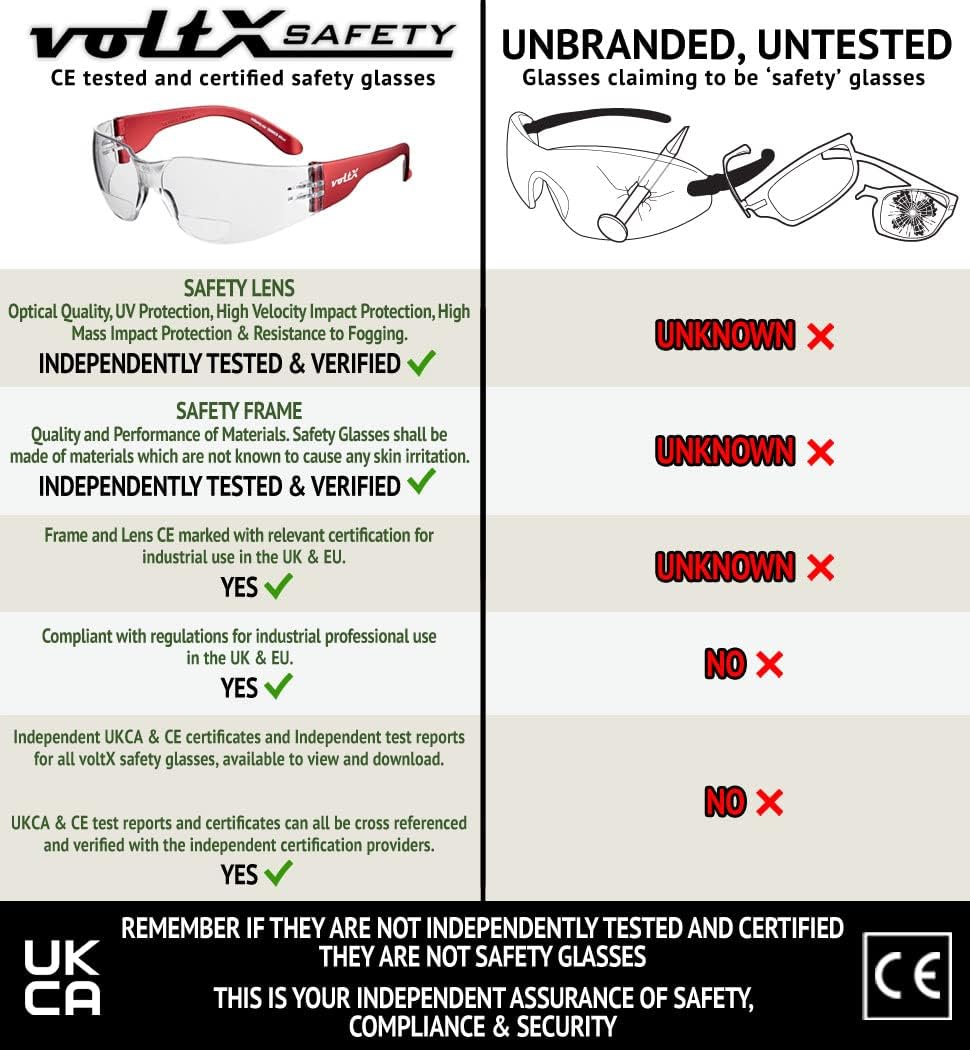 3 x voltX ‘Grafter’ BIFOKALE (KLAR +1.5 Dioptrie) Leichtgewichts Industrie Lesen Schutzbrille, EN166