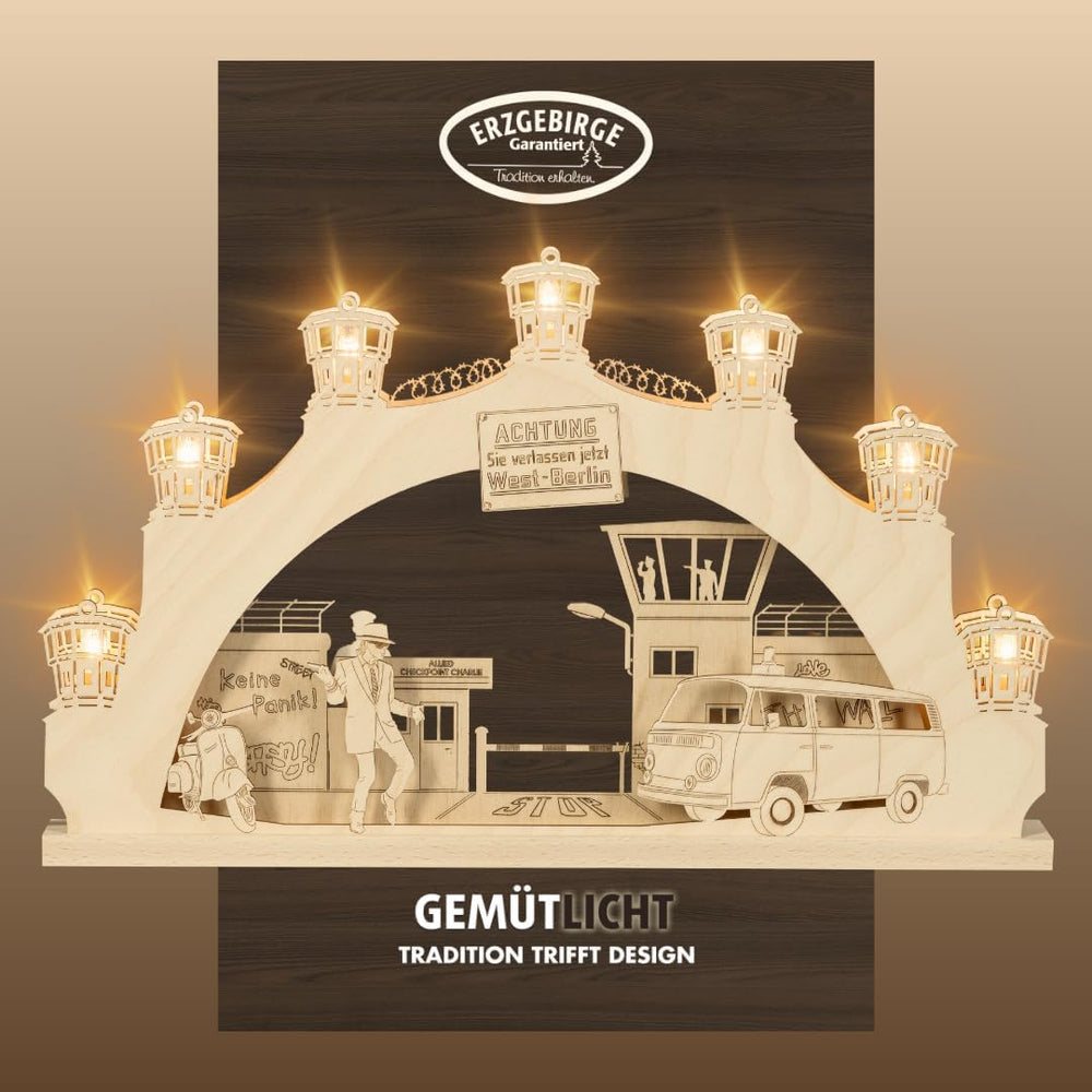 weigla - Schwibbogen 7 flg. Checkpoint Charlie - Erzgebirge original - Lichterbogen Weihnachten - 7