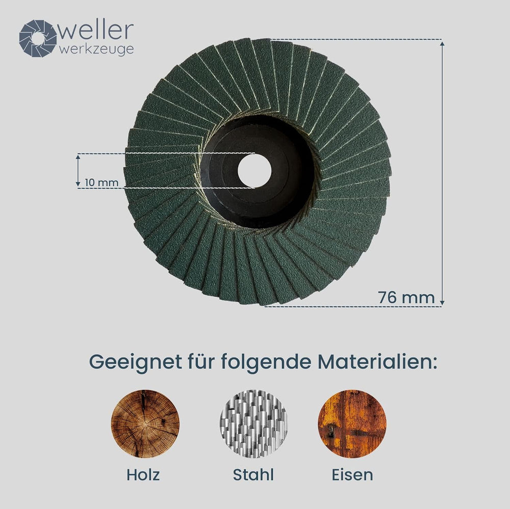WELLERWERKZEUGE | 3er Set Raspelscheibe Schleifscheibe 76x10 Holz Hufbearbeitung für mini akku Winke