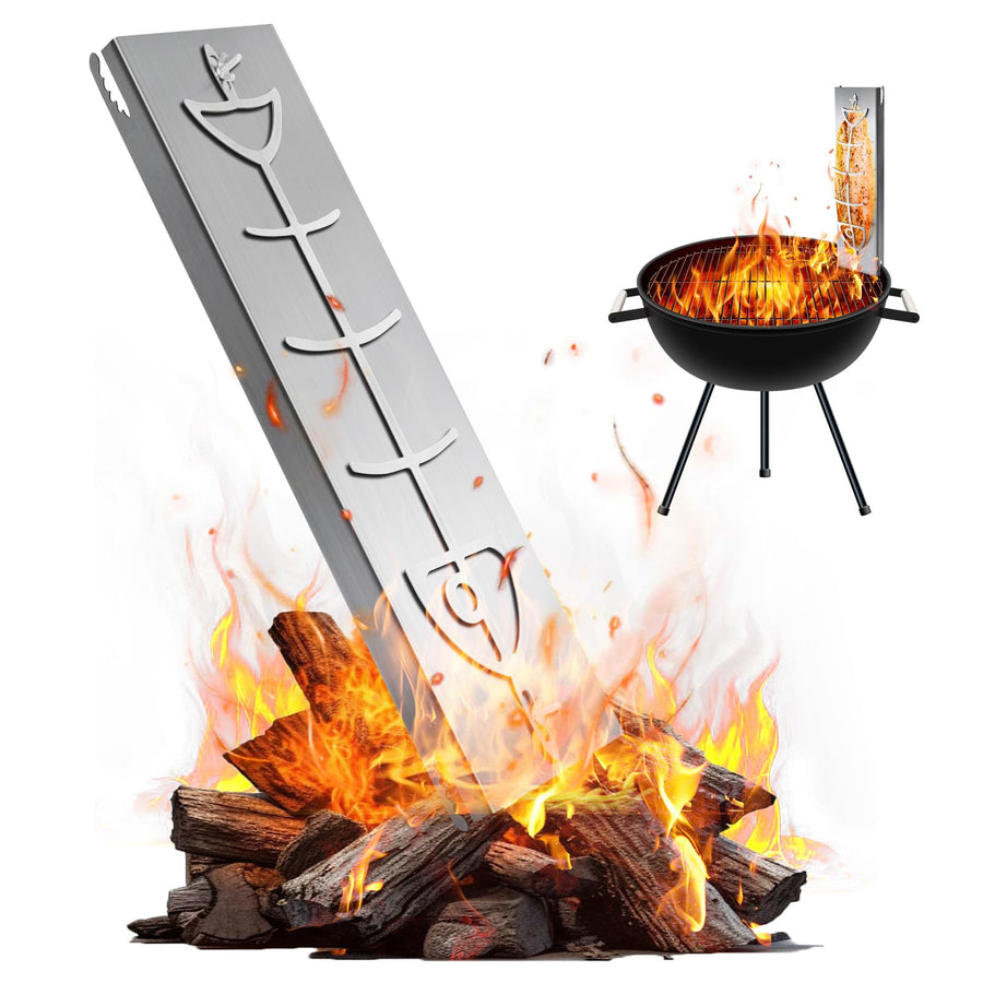 Flammlachsbrett Edelstahl, Flammlachsbrett für Feuerschale und Kugelgrill, 58.5 x 16 cm, 180° drehba