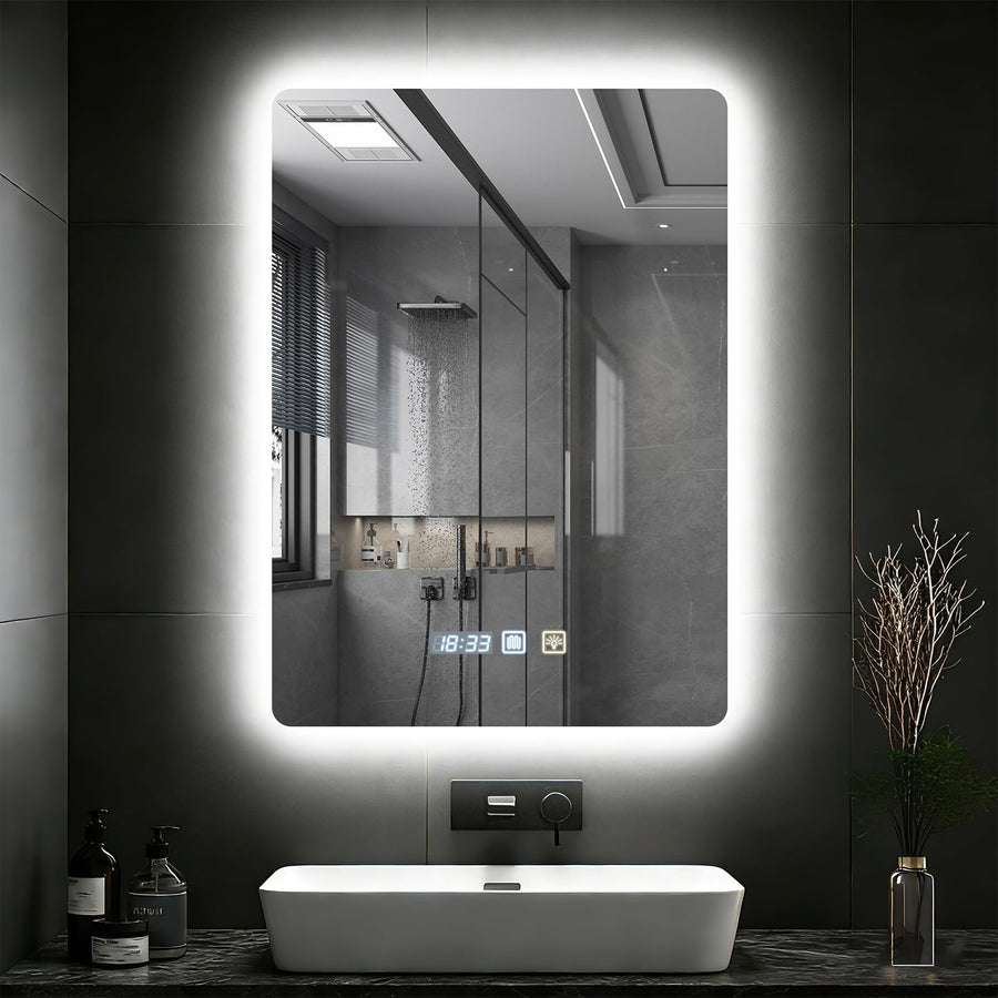 Badezimmerspiegel mit LED-Leuchten für die Wand, beschlagfrei, 3 Farben dimmbar, LED, HD-Hartglas, B