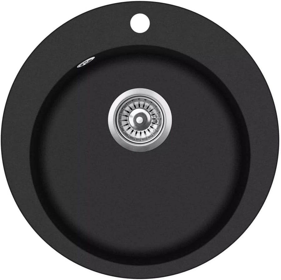 yorten Granitspüle Einzelbecken Rund Küchenspüle Einbauspüle Spülbecken Spüle Granit 1-Becken 505 x