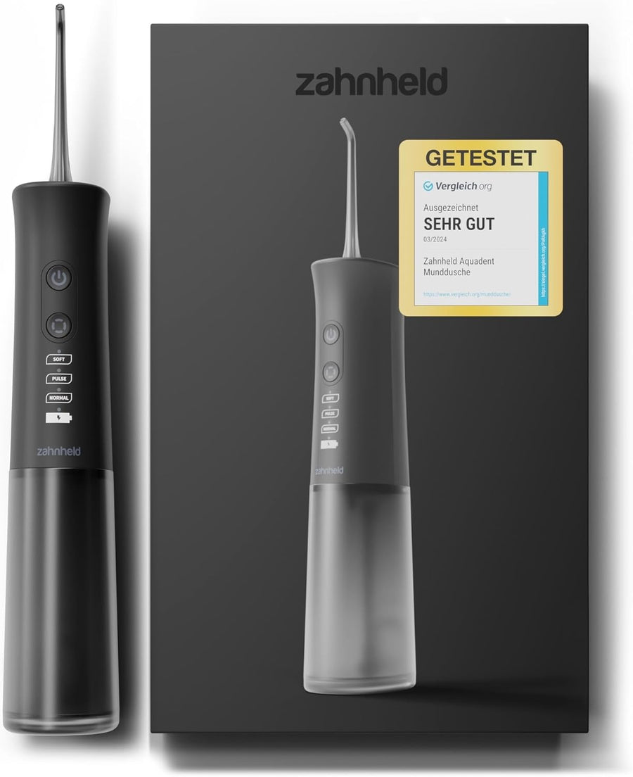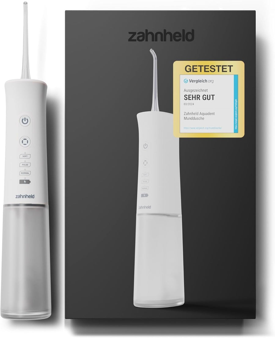 Zahnheld® Munddusche AQUADENT | Kabellos | Für unterwegs und zu Hause | Water Flosser | Fördert eine