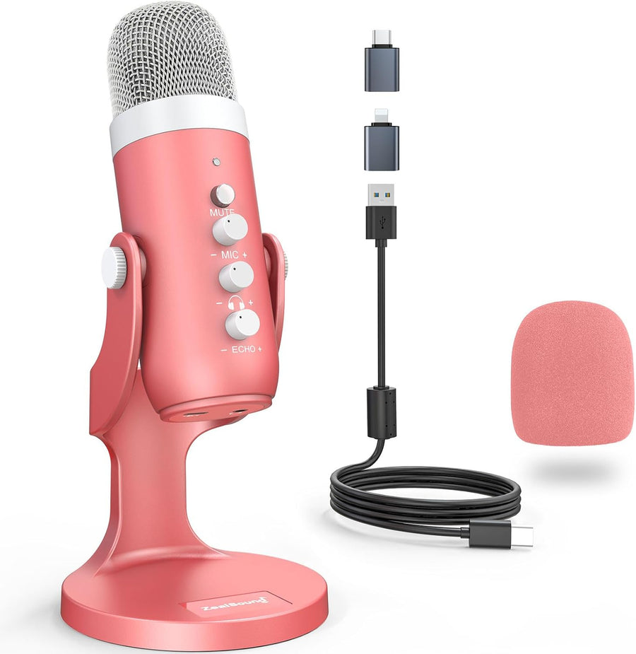 zealsound Gaming USB Mikrofon PC, für Streaming Podcast Studio, für PS4 PS5 Mac Handy, mit Typ-C Ada