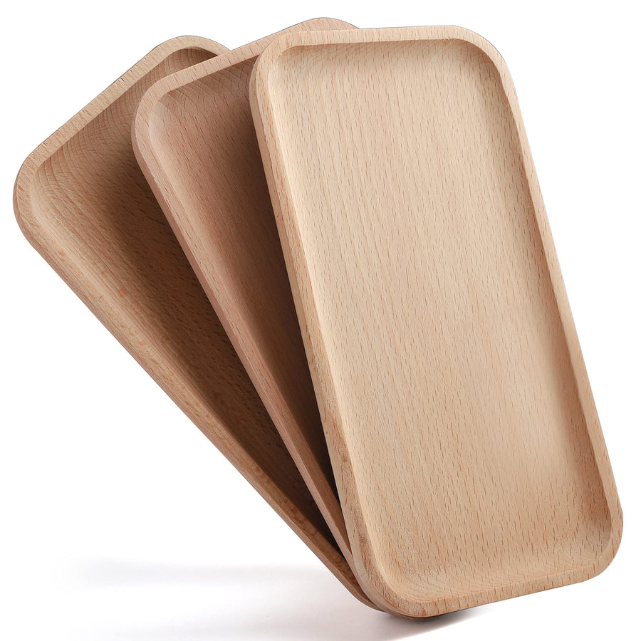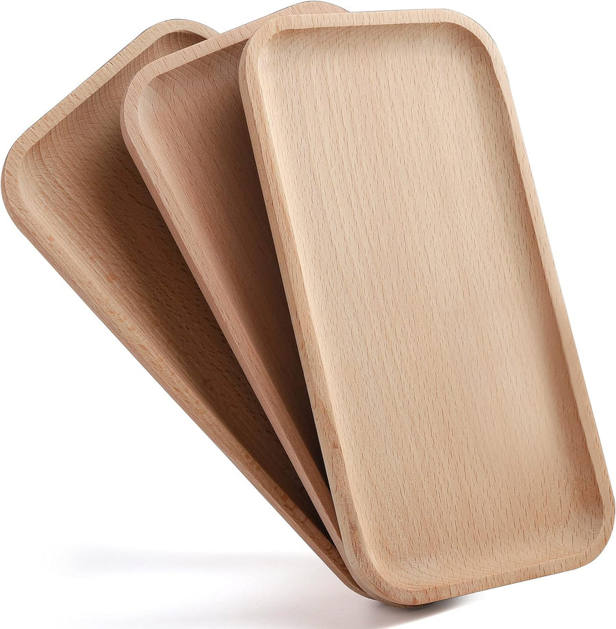 zeeooil Servierplatte aus Holz, 3 Stück, 24,8 cm, rechteckig, Serviertablett aus Holz, Charcuterie-B