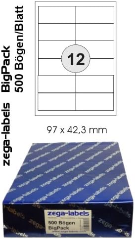 6.000 Etiketten 97 x 42,3 mm selbstklebend auf DIN A4 Bögen (2x6 Etiketten) - 500 Blatt Bigpack - Un