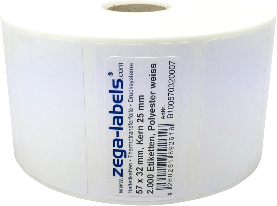 Polyester Thermotransfer Etiketten auf Rolle - 57 x 32 mm - aus PET Polyesterfolie weiss für Typensc