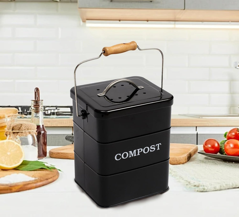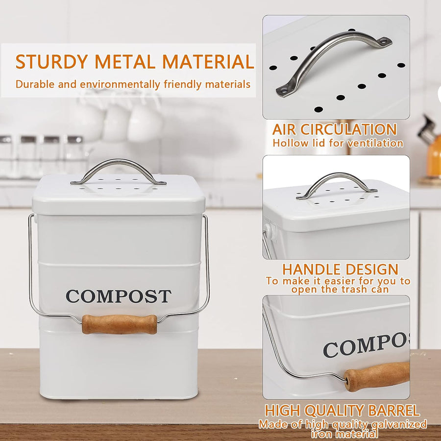 Biomülleimer Küche -6l-Enthält Einen Aktivkohlefilter Küchenkomposter - Metall Bio Mülleimer Klein M
