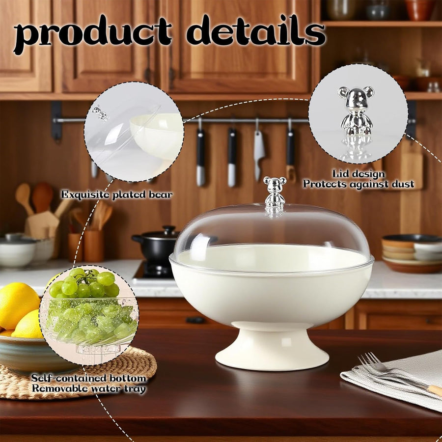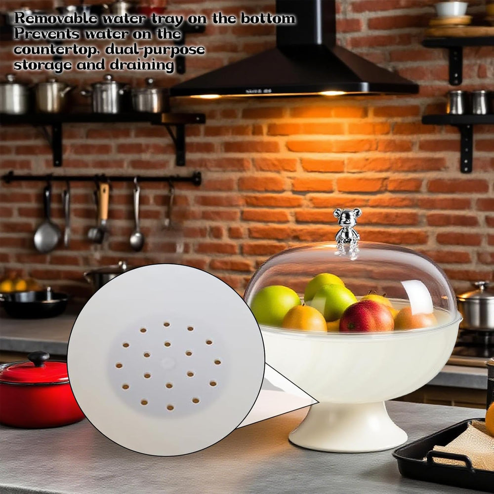 Obstschale mit Deckel und Abtropfeinsatz – Kunststoff Fruchtschale mit Fuss für Tischdeko, Snackscha