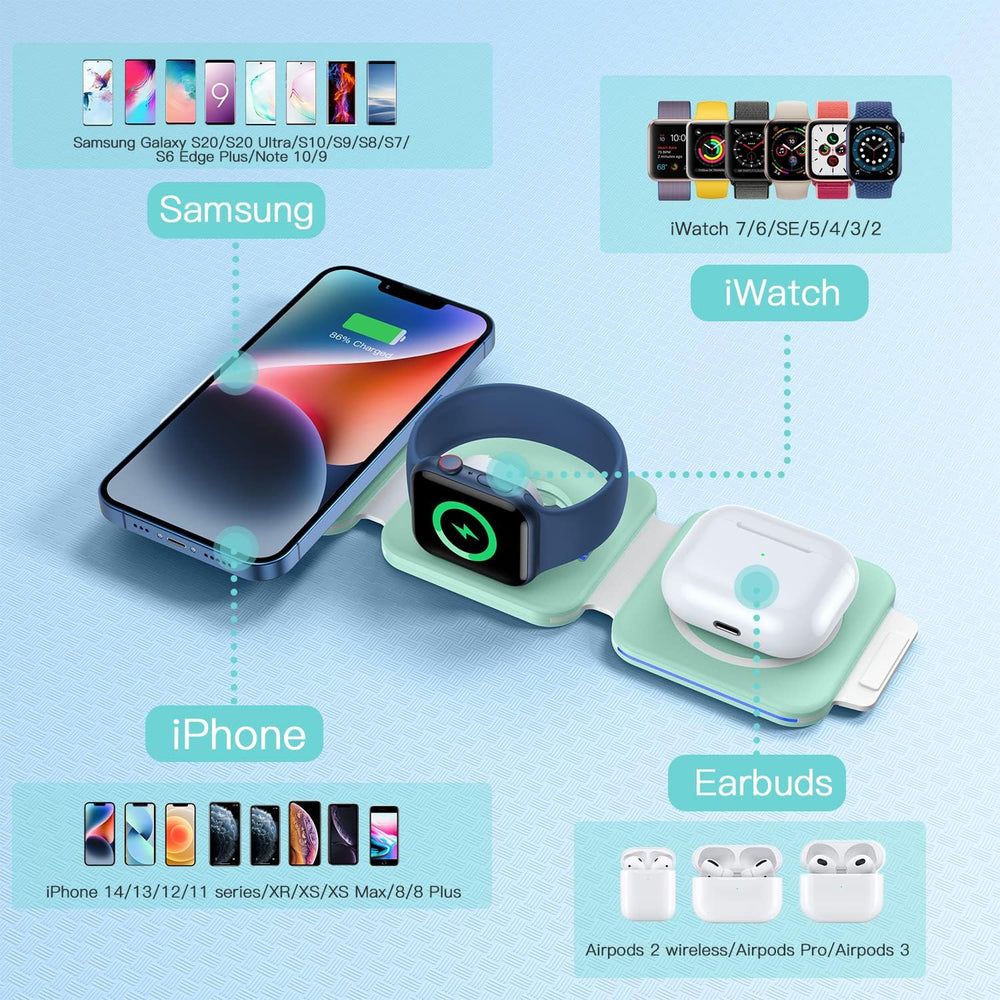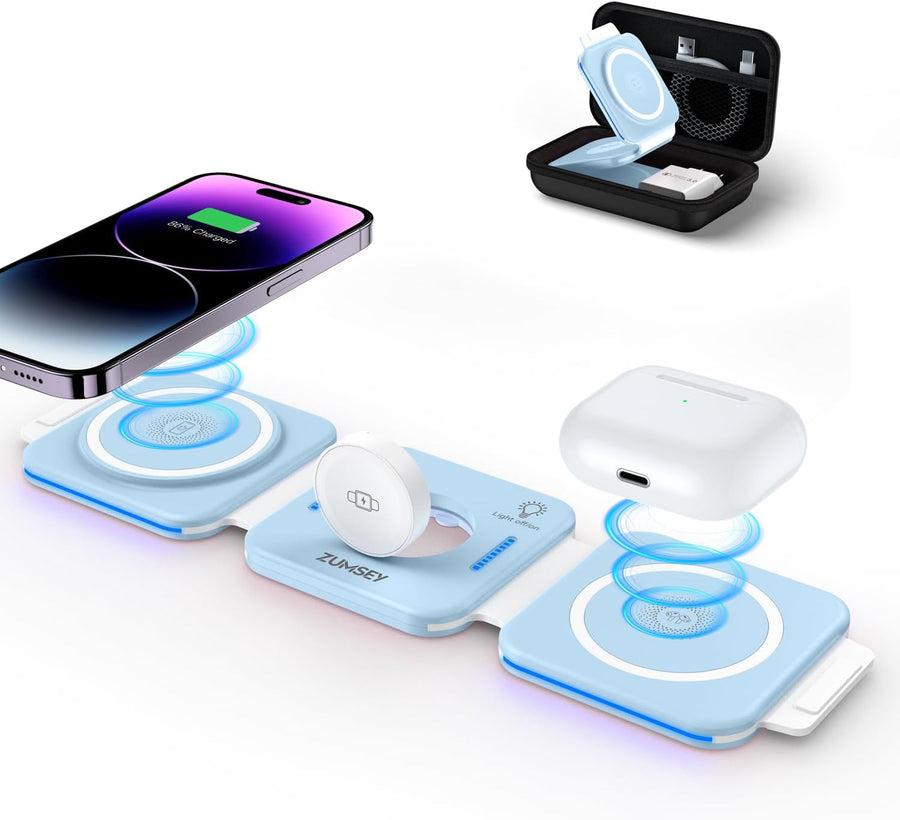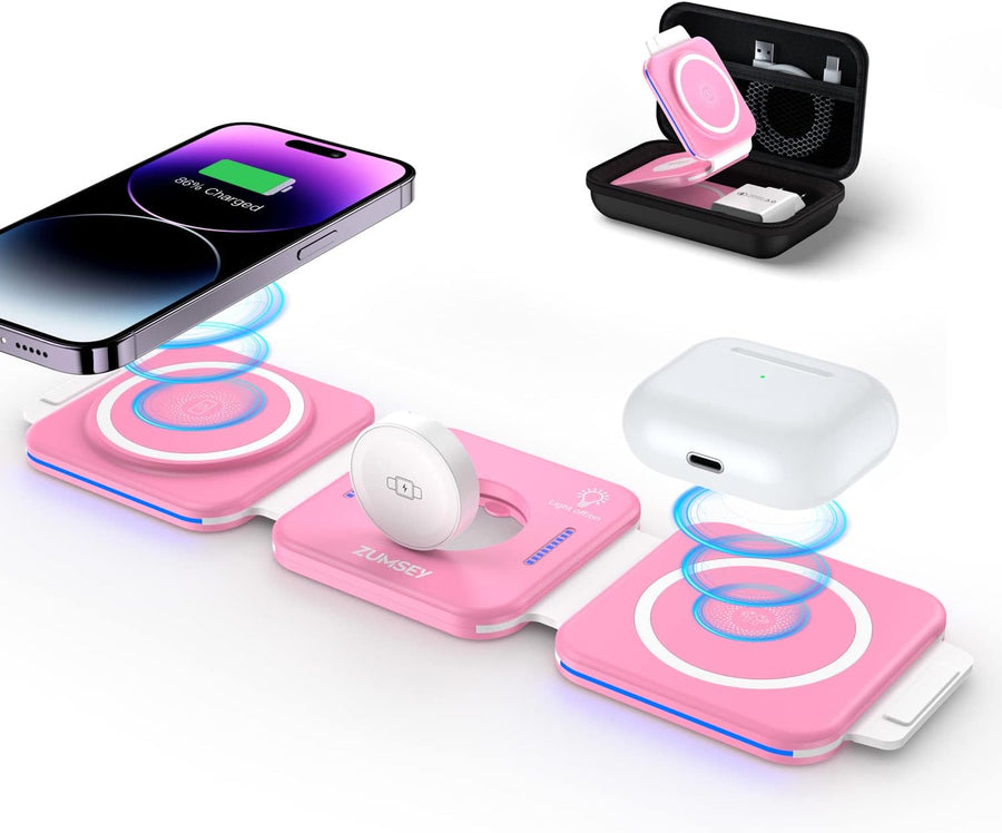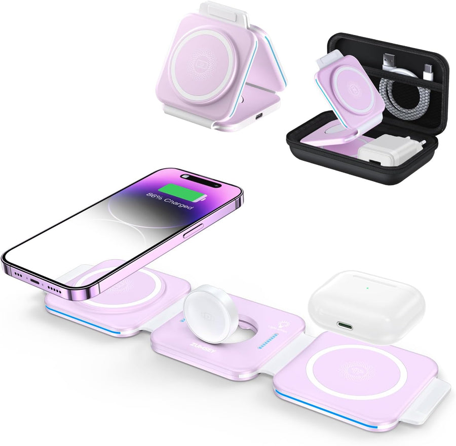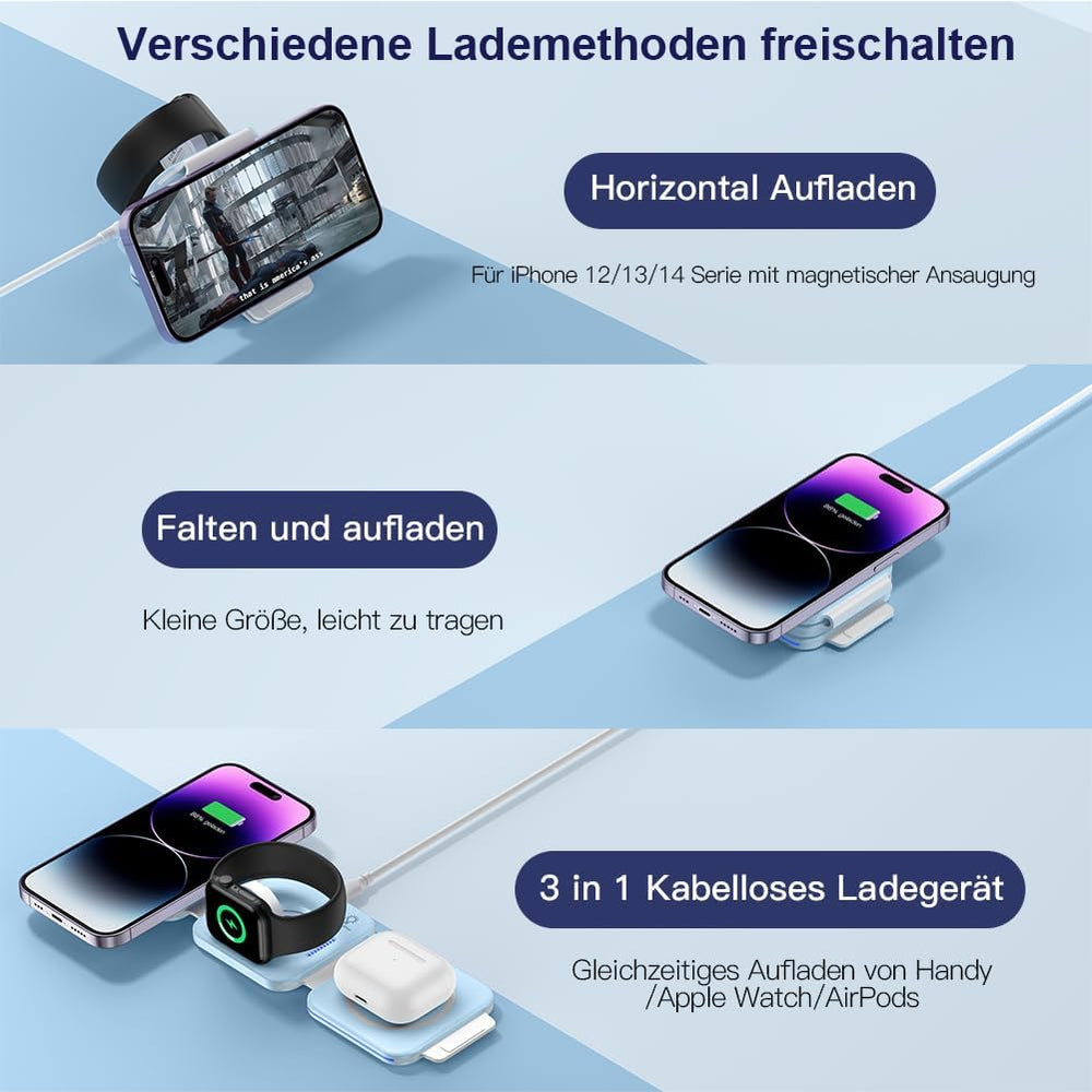 ZUMSEY 3 in 1 Faltbar Kabelloses Ladegerät, Magnetische Ladestation Kompatibel mit iPhone 15 14 13 1