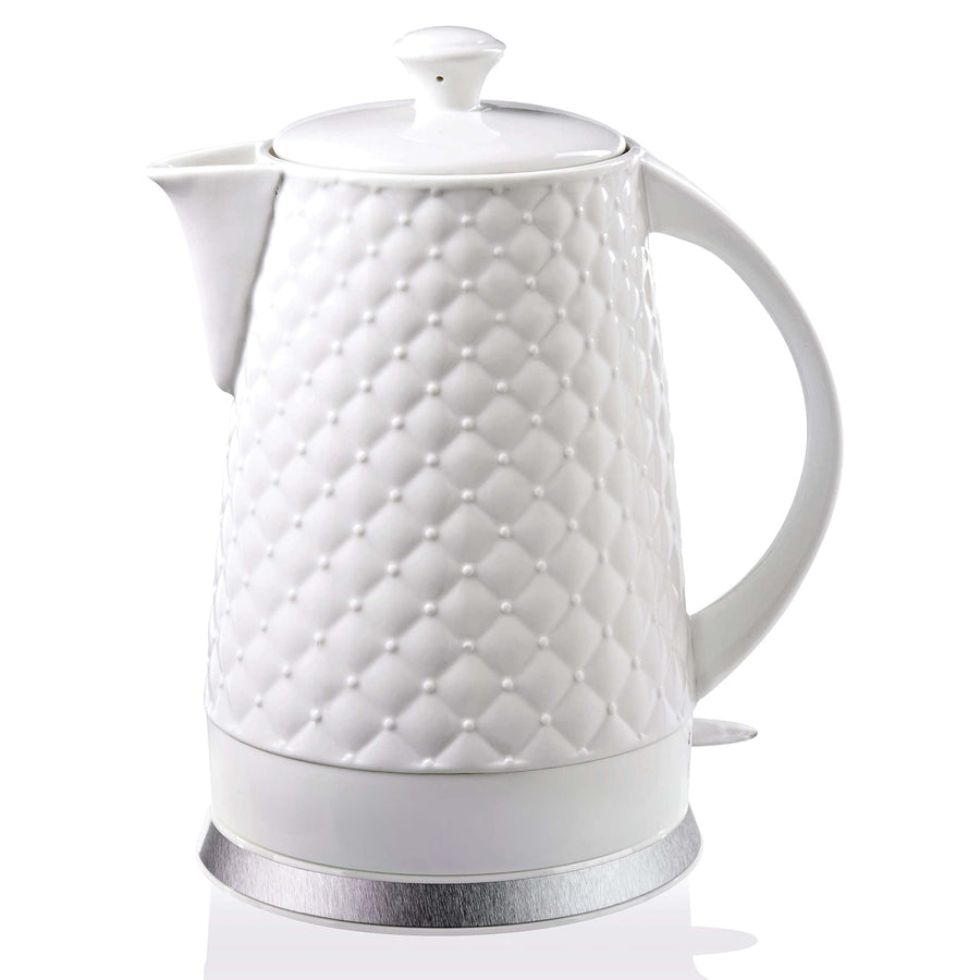 KVOTA Elektrischer Keramik Wasserkocher, Teekessel 1,5 L, 1500W, Noppen-Design, weiss, abnehmbarer