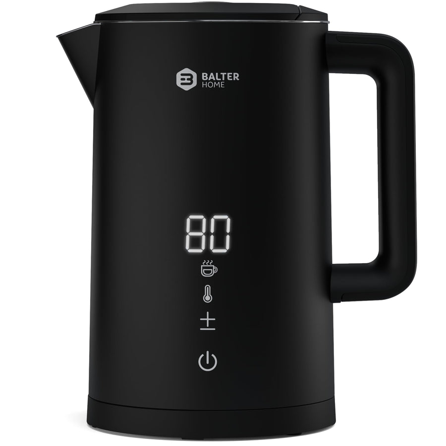 BALTER Edelstahl Wasserkocher mit Temperatureinstellung, 45°C-100°C, Doppelwand, BPA frei, leise & k