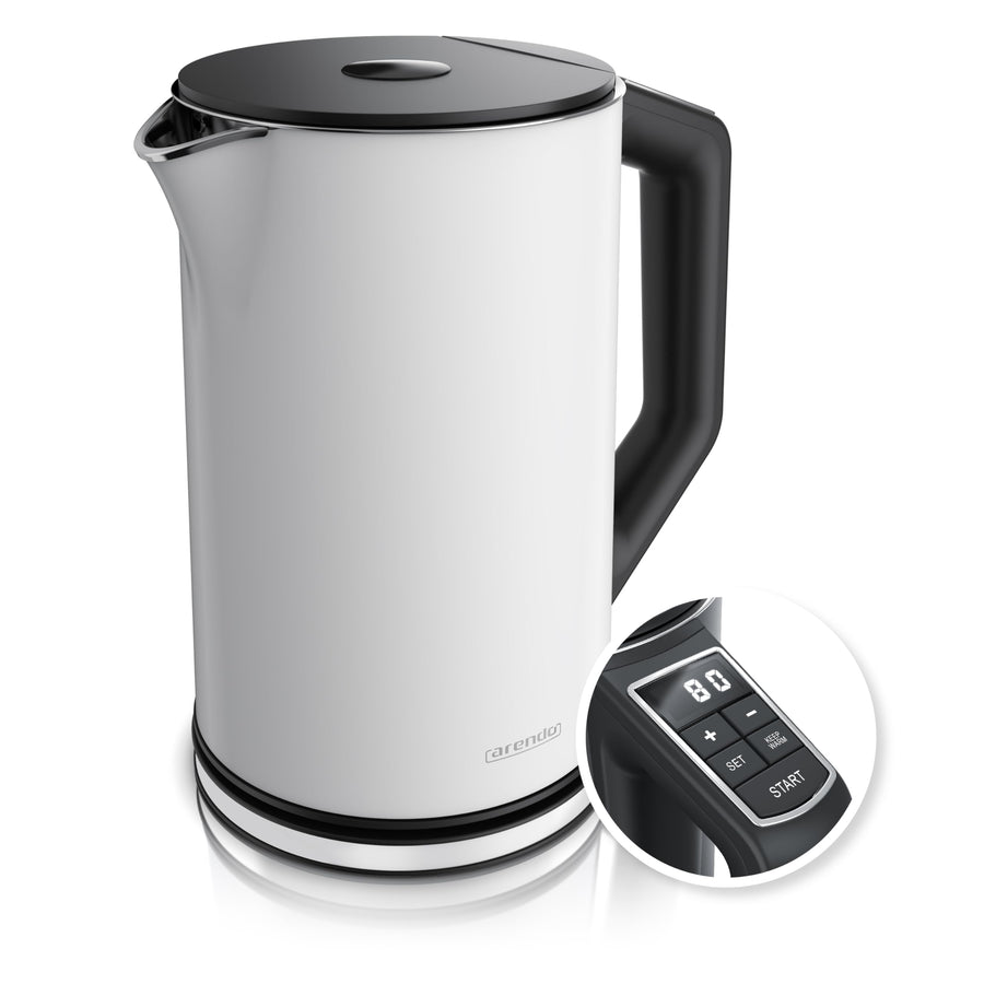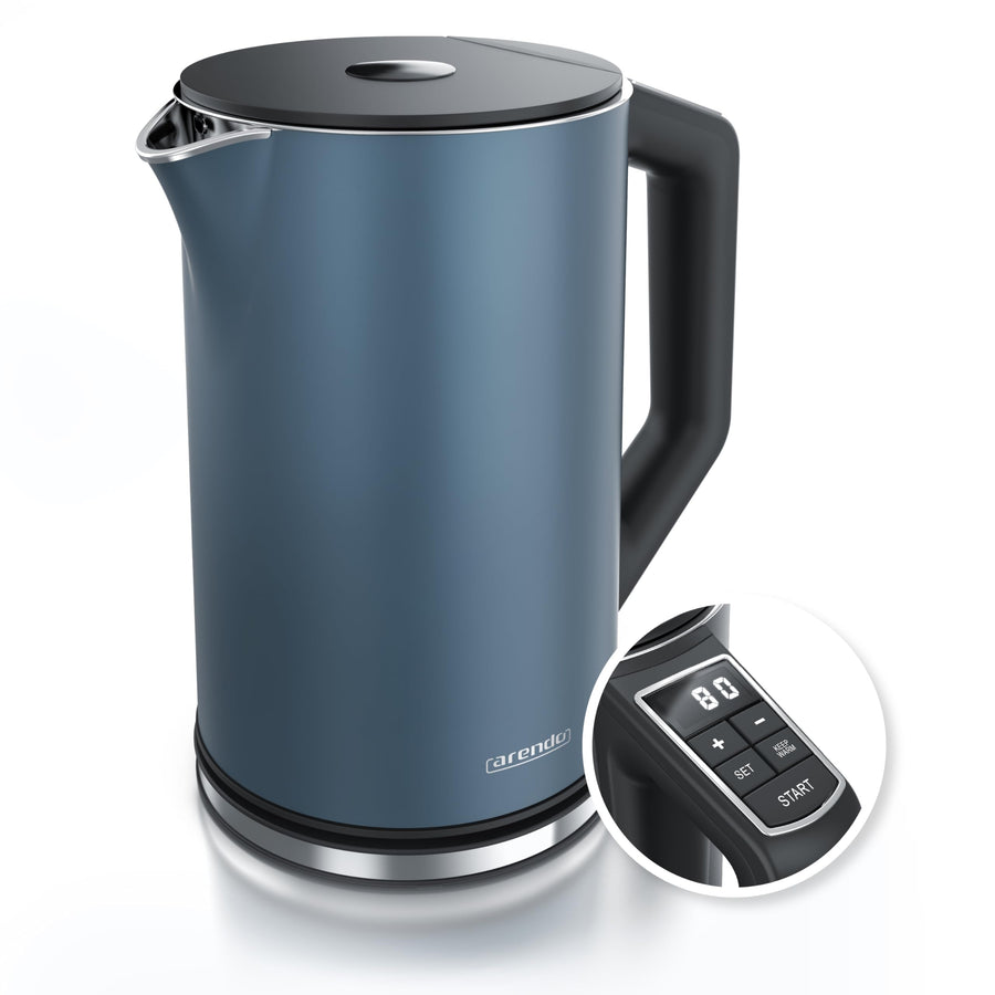 Arendo - Edelstahl Wasserkocher mit Temperatureinstellung 40-100 Grad in 5er Schritten - Doppelwand