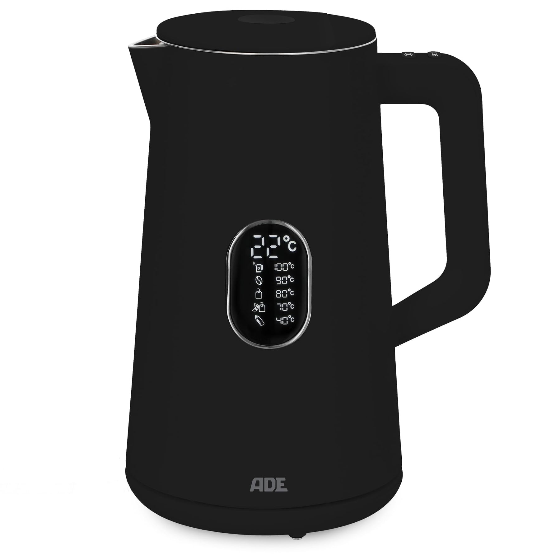 - Das doppelwandige Gehäuse des Wasserkochers mit Temperaturanzeige besteht innen aus rostfreiem Edelstahl und fasst 1,5 l Wasser. Die Leistung von 1.500 bis 1.800 W sorgt dafür, dass das Wasser schnell heiss wird