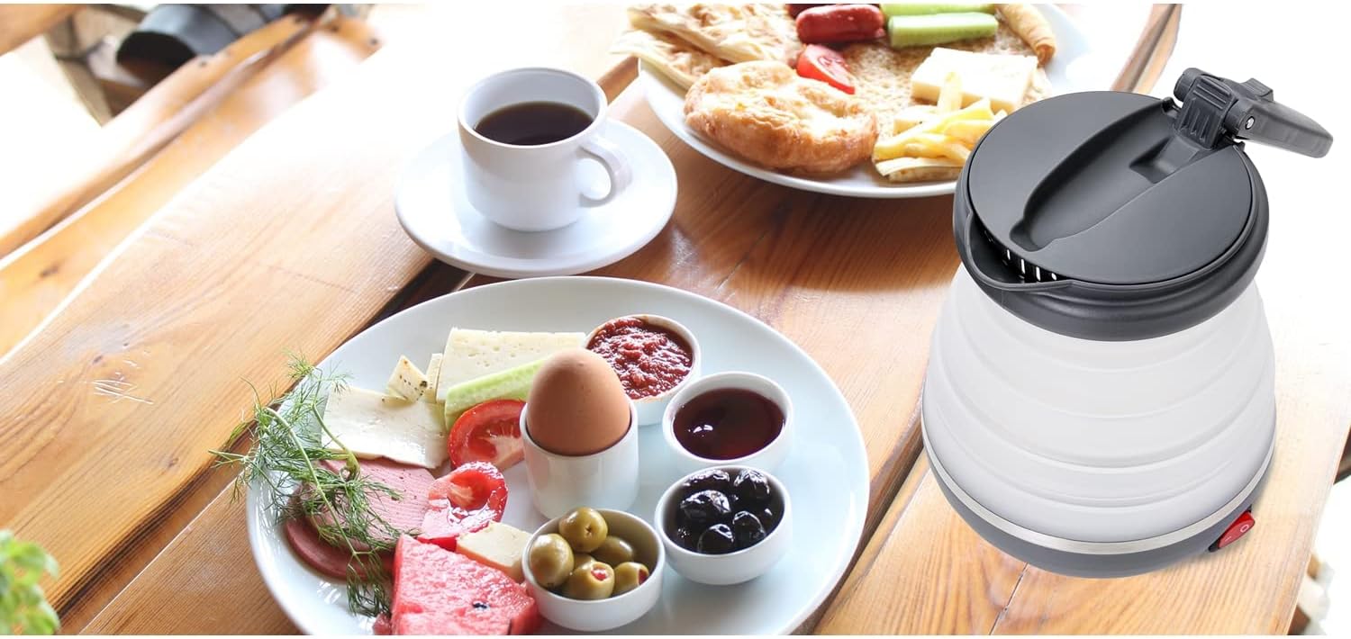- 【CAPACITY 0.6 L】. It allows you to efficiently boil up to 0.6 litres of water, enough to make 2 cups of tea or your favourite hot drink and take it wherever you want thanks to its foldable body, taking up little space.