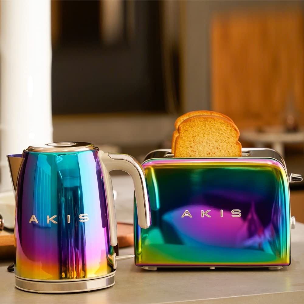 - 【Inhalt】 1x AKIS La Fête Design Doppel Langschlitztoaster aus Edelstahl (26 x 16 x 24 cm, 850 Watt); 1x AKIS La Fête Design Wasserkocher aus Edelstahl (16 x 20,5 x 23cm, Volumen min. 0,5 -1,7 liter, 2400W, Kabellänge 75cm), 1x Gerätesockel inkl. Kabelaufwicklung.