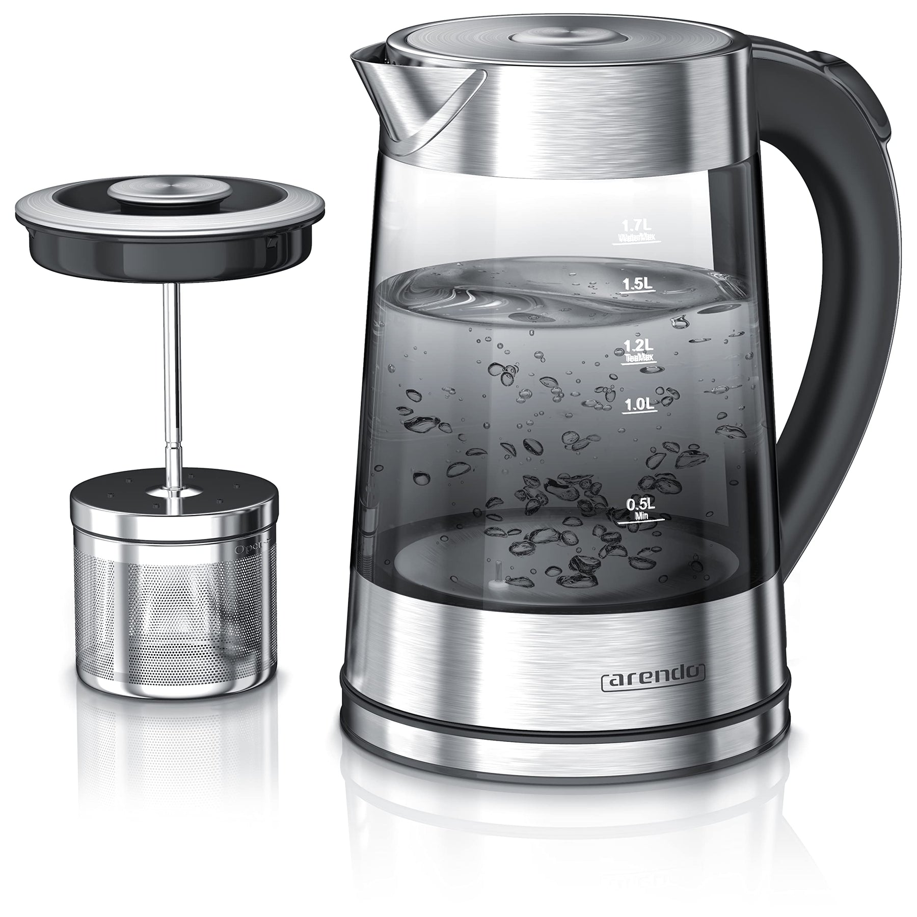 - Teetrinker sollten sich den Arendo Infusion genauer anschauen: Mit dem integrierten Teesieb bereiten Sie Ihren Lieblingstee direkt in der Kanne zu. Das Rauchglas-Design und die klare Linienführung verbreiten optischen Chic, er ist hochwertig verarbeitet und bietet eine durchdachte Bedienung. Und während des Kochvorgangs wird die gewünschte Wassertemperatur nicht ungefähr, sondern ganz genau erreicht, da ein Fühler die Temperatur überprüft. | 304566