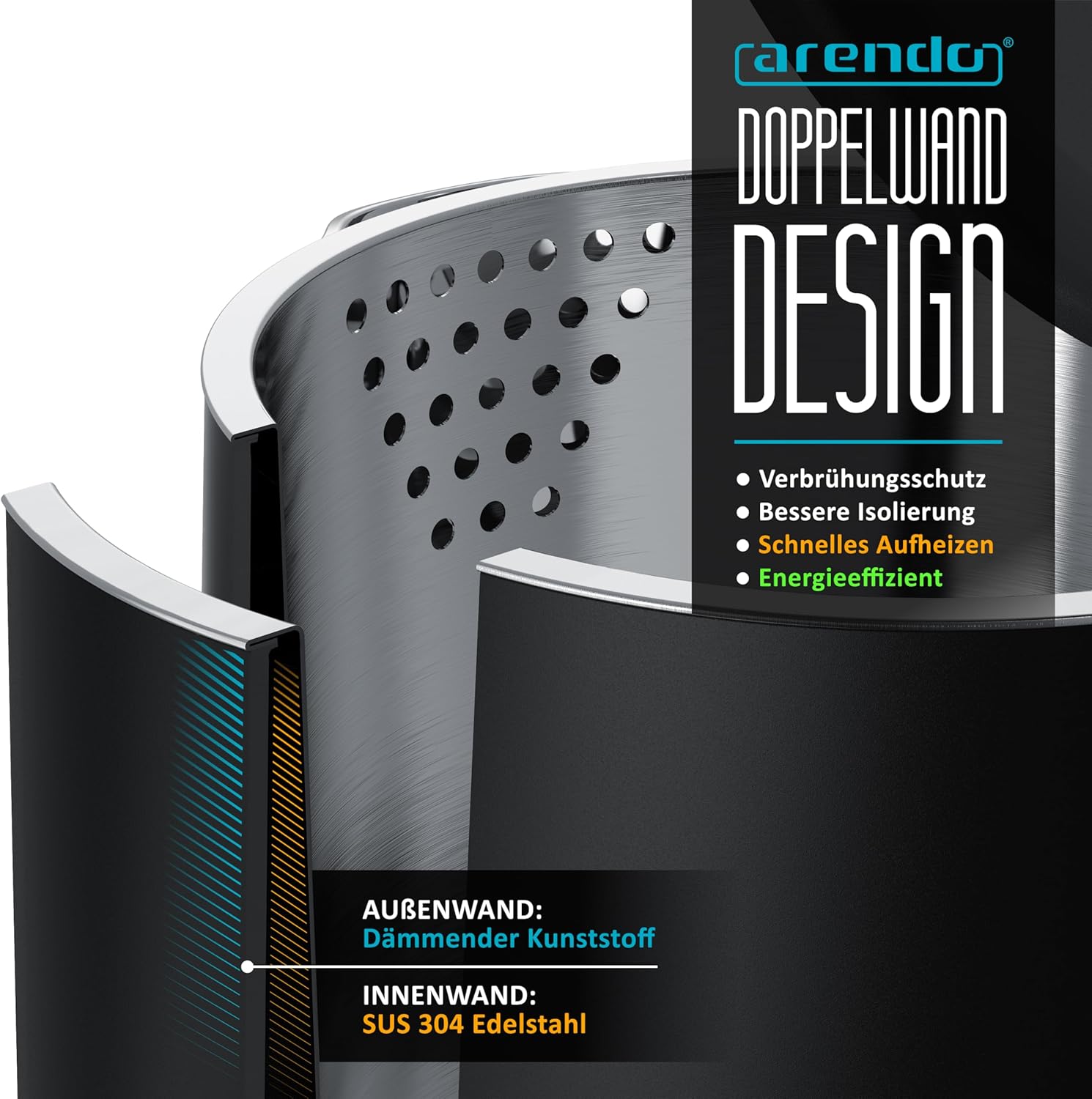 - SMARTE ISOLIERUNG FÜR MEHR SICHERHEIT: Das funktionale Doppelwand-Design mit Edelstahl-Innengehäuse hält die Wärme im Inneren, während die Aussenwand angenehm kühl bleibt – für effizientes Erhitzen und sicheres Anfassen. Cool-Touch-Griff,