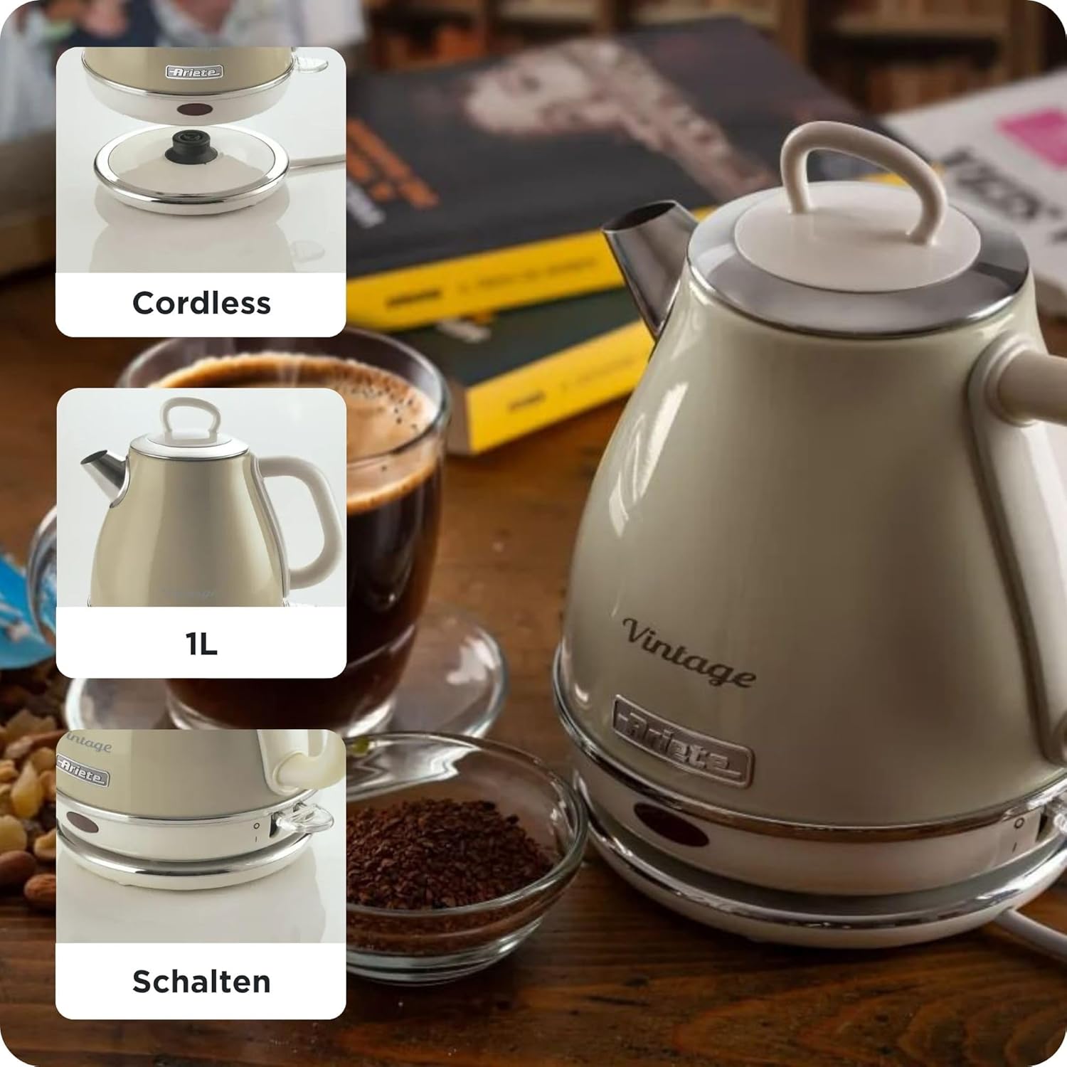 - ARIETE VINTAGE LINE: Mit dem Ariete Vintage Wasserkocher, mit seinem schlichten Design, dezenten Farben und edlen Oberflächen, bringen Sie einen Hauch von Retro-Stil in Ihre Küche