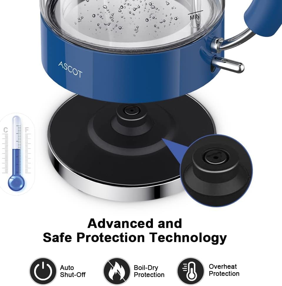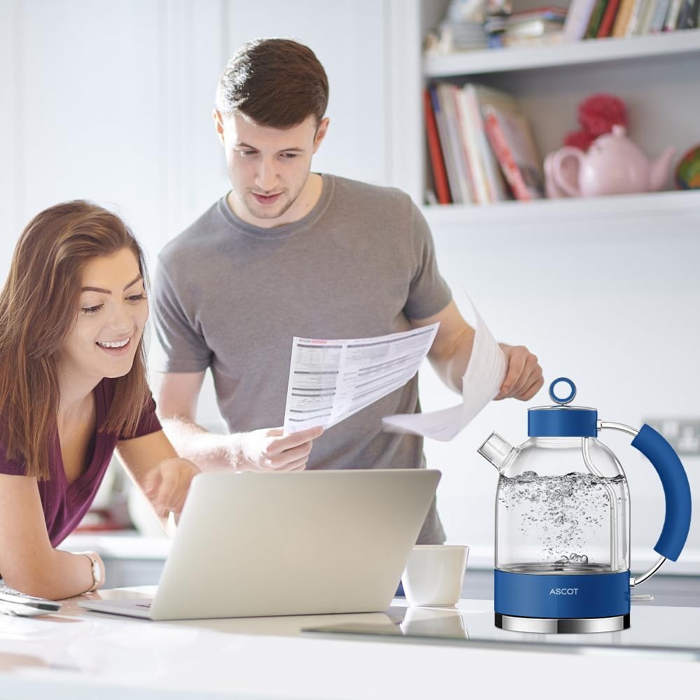 - STILVOLLES UND PRAKTISCHES DESIGN - ASCOT Wasserkocher aus Glas mit einzigartigem Design und stilvollem Aussehen. Verbrühschutzgriff, runder Ausguss, separater Deckel und Ausgussfilter werden unter strengen Qualitätsstandards hergestellt.