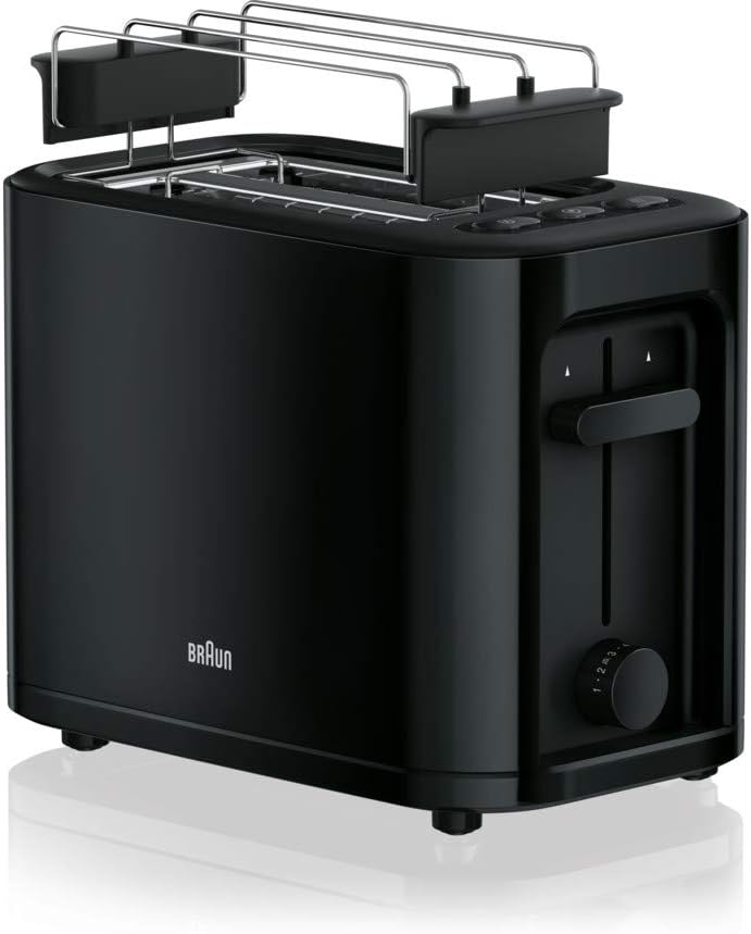 - Produkt 2: EINFACHE BEDIENUNG: Die Aufwärm-, Stop- und Auftauftasten sind von oben am Toaster zu bedienen. Die Röstgradeinstellung und Hebetaste sind an der Seite des Toasters positioniert