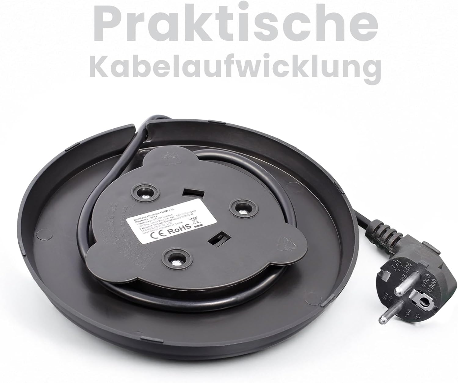 - Platzsparende Kabelaufwicklung: Das Netzkabel lässt sich praktisch in der Basis verstauen.