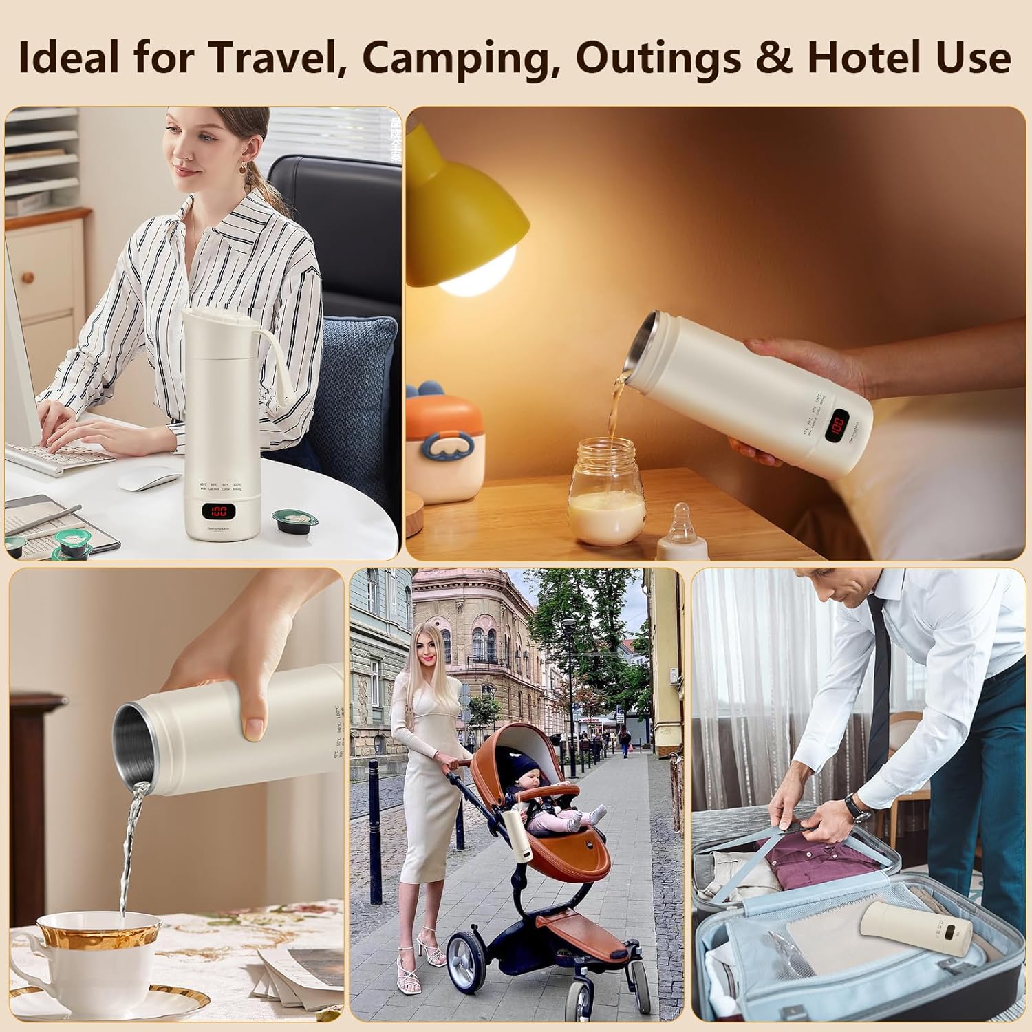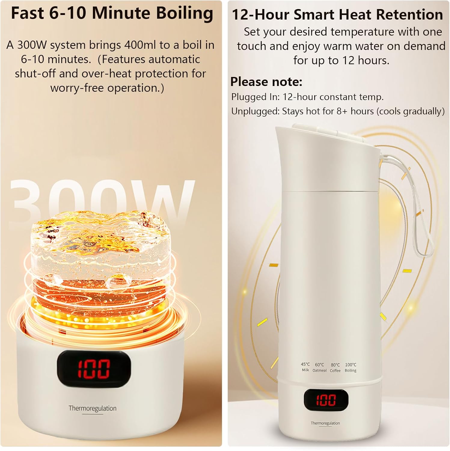 - 【Schnelles Aufheizen & Langzeit-Warmhaltefunktion】 Mit 300 W Leistung erreicht der Mini -Wasserkocher tragbar in nur 6-10 Minuten 100 °C. Die Warmhaltefunktion hält das Wasser bis zu 12 Stunden auf der eingestellten Temperatur* – perfekt für