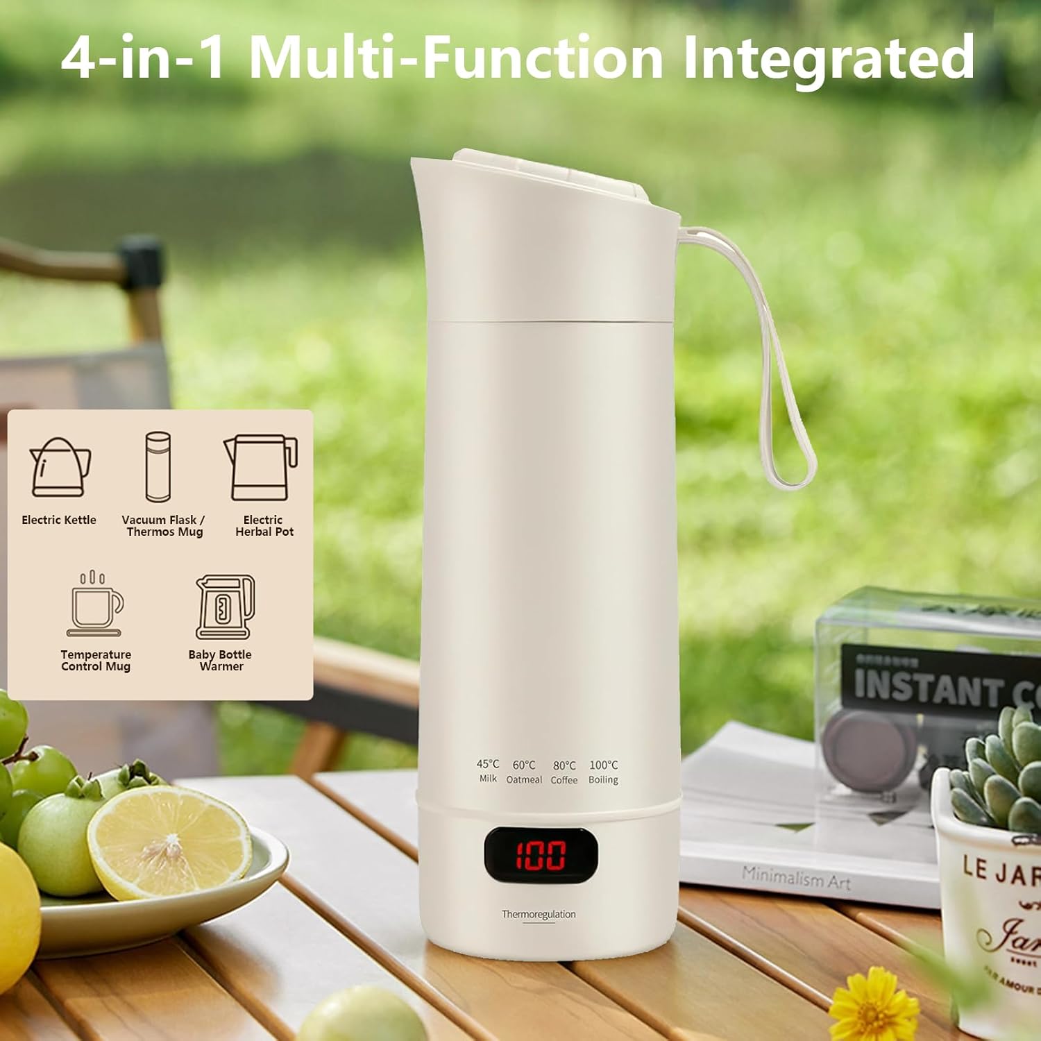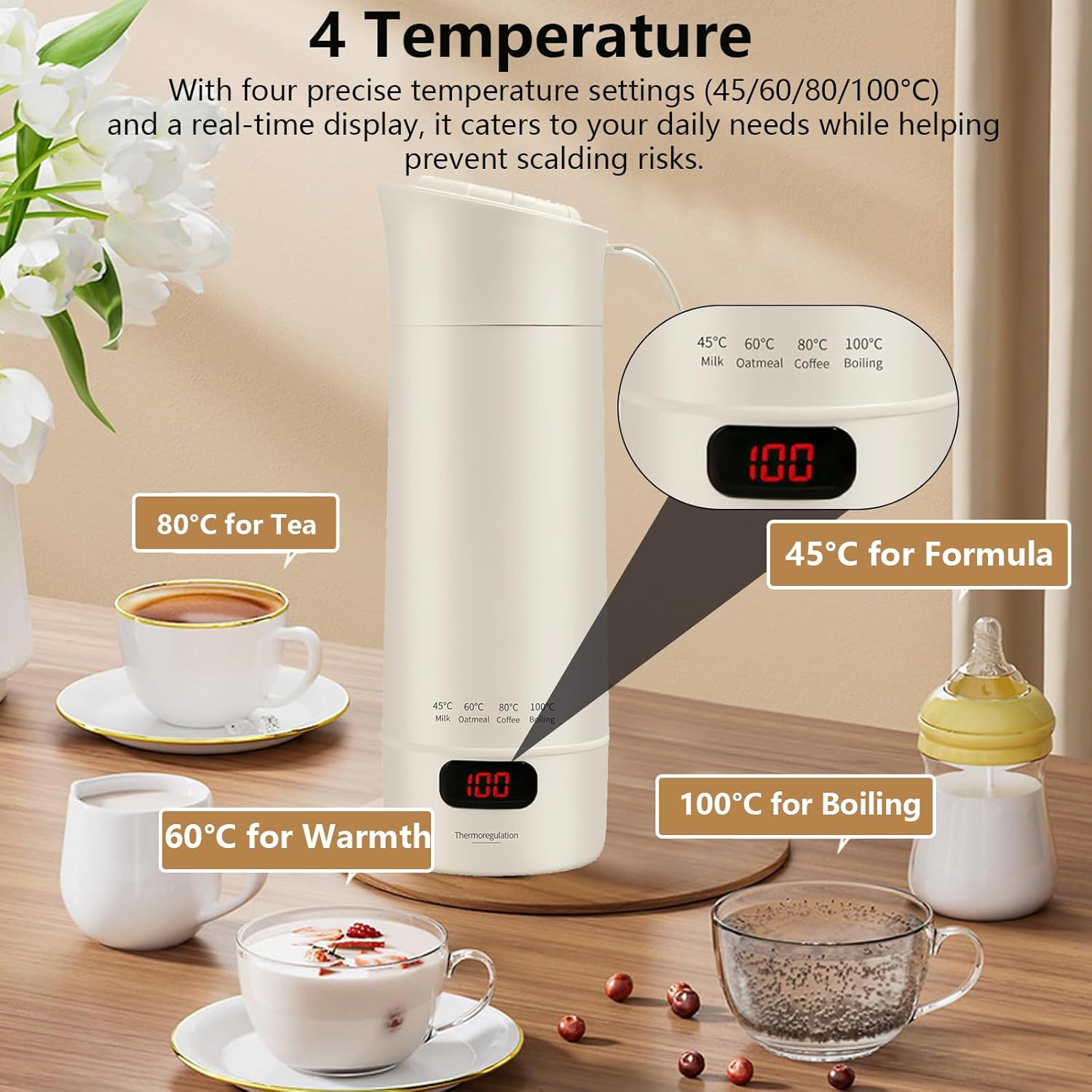 - 【Intelligente Temperatursteuerung】 Der Kleiner Wasserkocher verfügt über eine präzise Vier-Stufen-Temperaturregelung (45 °C, 60 °C, 80 °C und 100 °C). Die Temperatur wird deutlich auf einem LCD-Display angezeigt – auch nachts problemlos
