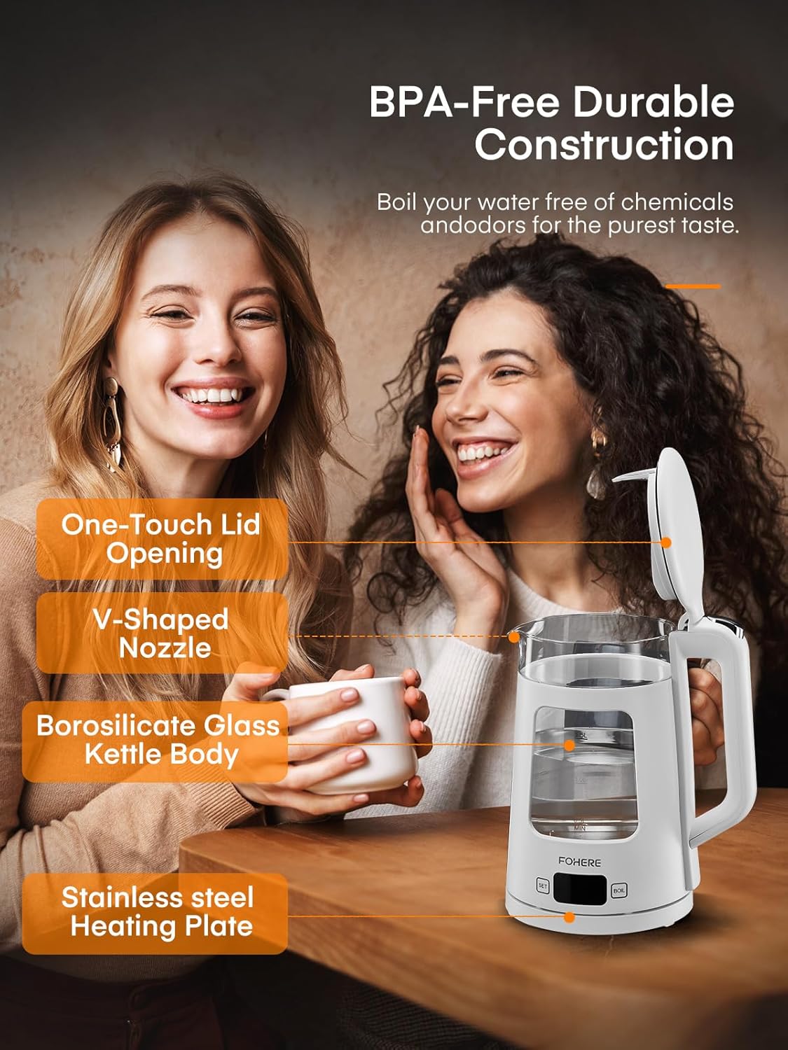 - 【Reinstes Wasser für Sie】Der gesamte Körper des Wasserkochers besteht aus speziell gefertigtem Borosilikatglas, das für seine Hitzebeständigkeit und Rissbeständigkeit bekannt ist.Der Boden besteht aus lebensmittelechtem 304er Edelstahl,der einen