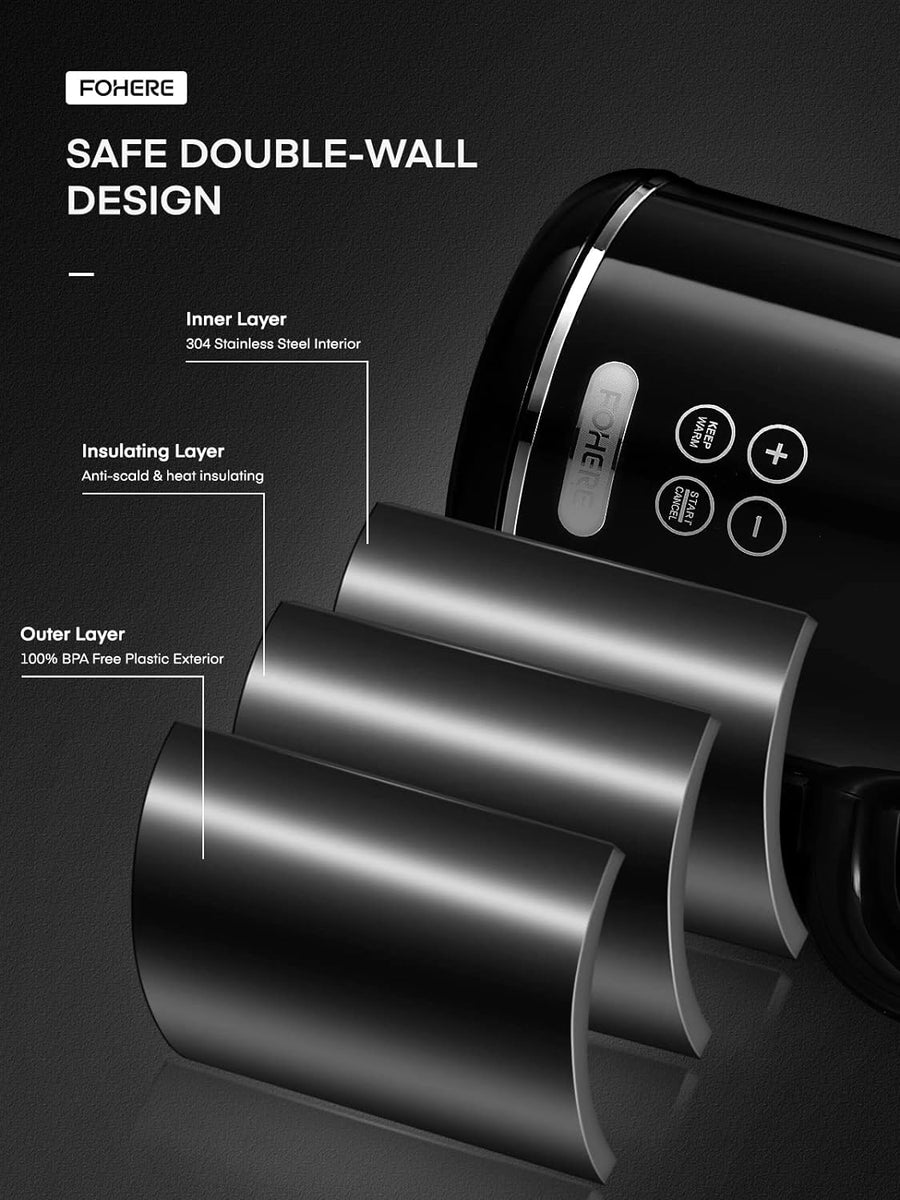 - 🍀【100% Edelstahl Wasserkocher】:FOHERE Wasserkocher besteht aus hochwertigem, 100% BPA-freiem Edelstahl. Das Innere des Wasserkochers ist vollständig aus lebensmittelechtem Edelstahl, ohne Kunststoff. Dadurch ist das Trinken gesünder und die