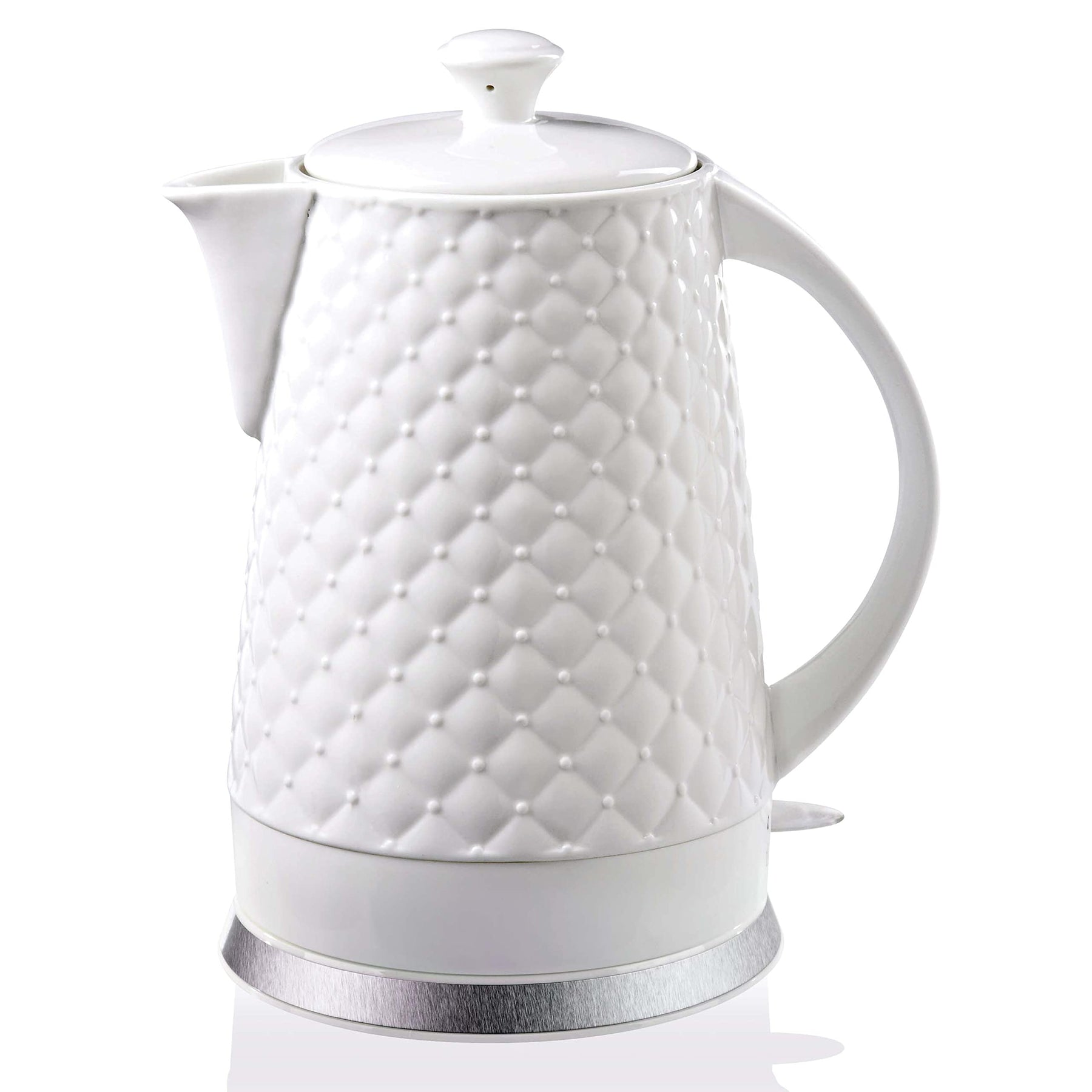 - Das Gerät ist aus hochwertiger Keramik gefertigt. Das moderne Design macht jede Küche anspruchsvoll. Das heisse Wasser kühlt sich im Keramik-Wasserkocher langsam ab. Der Deckel ist abnehmbar. Er passt perfekt zum Füllen von Wasser und verfügt über einen Sicherheitsverschluss.