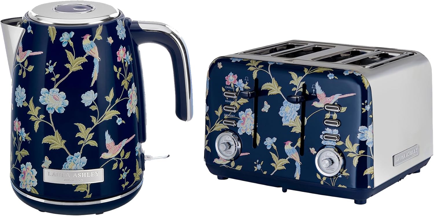 - Einzigartiges, Handgefertigtes Design: Jeder Edelstahl Toaster und Wasserkocher ist mit einem sorgfältig von Hand aufgetragenen Laura Ashley-Blumenmuster verziert. Dieses handgefertigte Detail verwandelt Ihre Haushaltsgeräte in dekorative Elemente und
