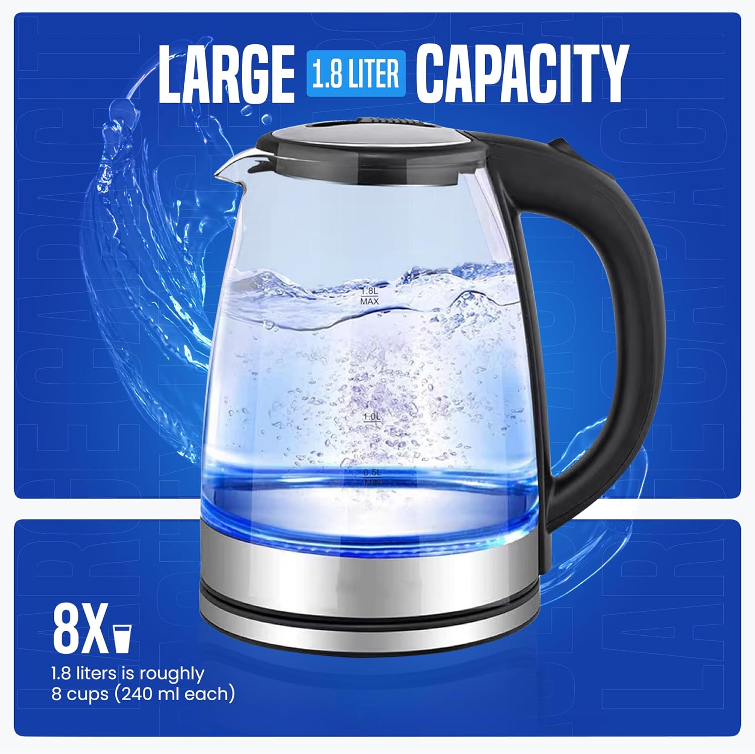 - 🔥 Leistungsstark & Blitzschnell – 1500W für heisses Wasser in Rekordzeit! Mit einer starken 1500W Leistung kocht dieser elegante Glas-Wasserkocher 1 Liter Wasser in nur 4 Minuten. Perfekt für Tee, Kaffee oder schnelle Suppen – geniessen Sie