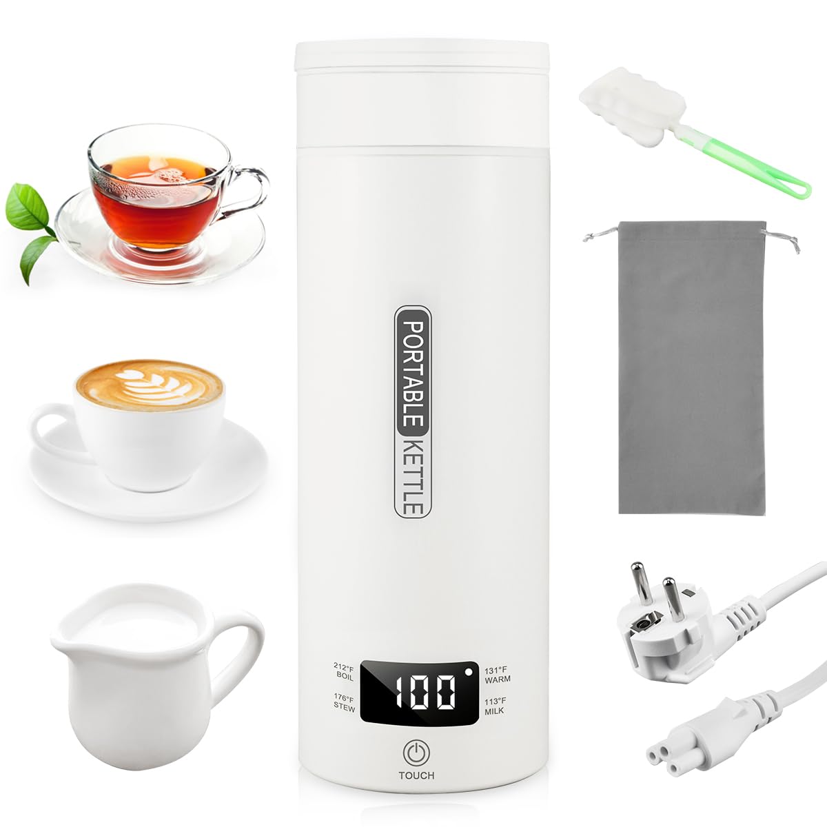 - Verpackungsinhalt: Du wirst bekommen 500ML edelstahl reise wasserkocher tragbarer, 220V europäischer stecker, aufbewahrungstasche, schwamm-reinigungsbürste, bringen sie das perfekte erlebnis.