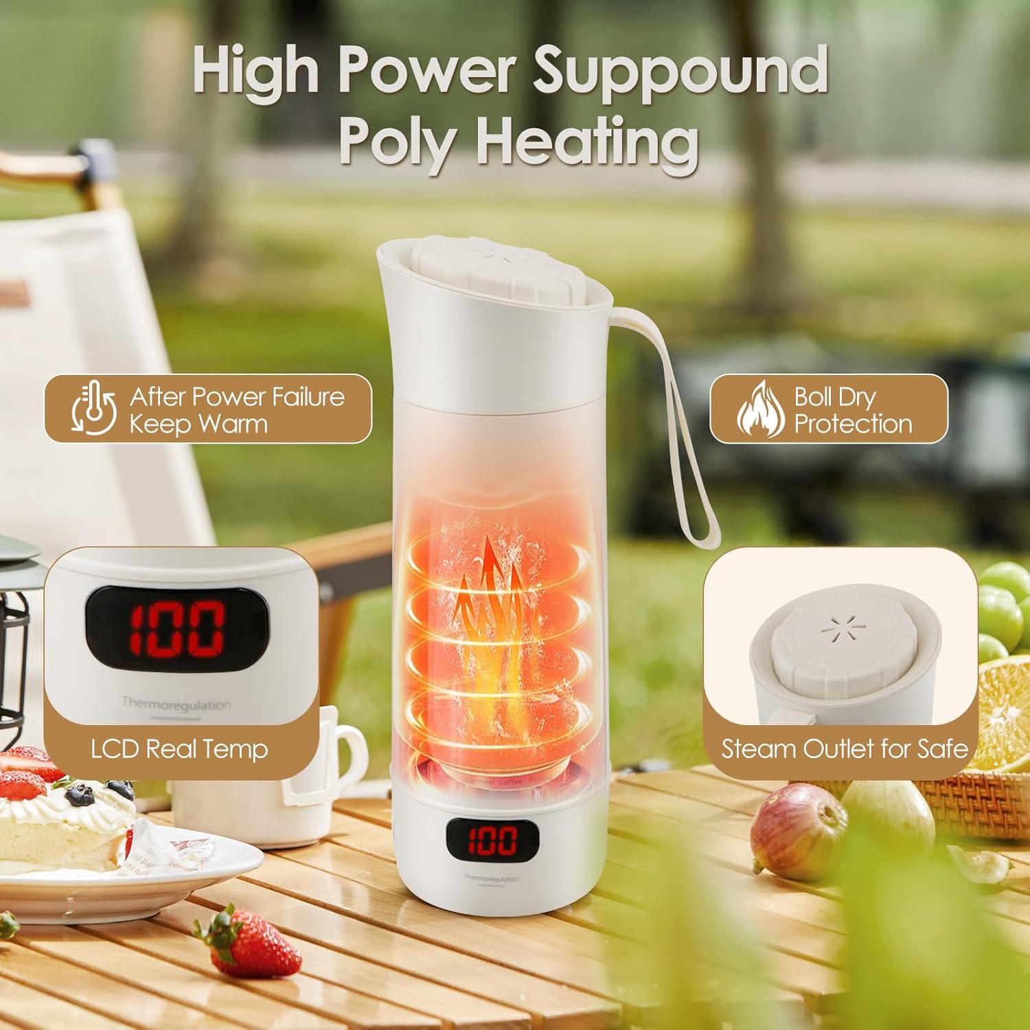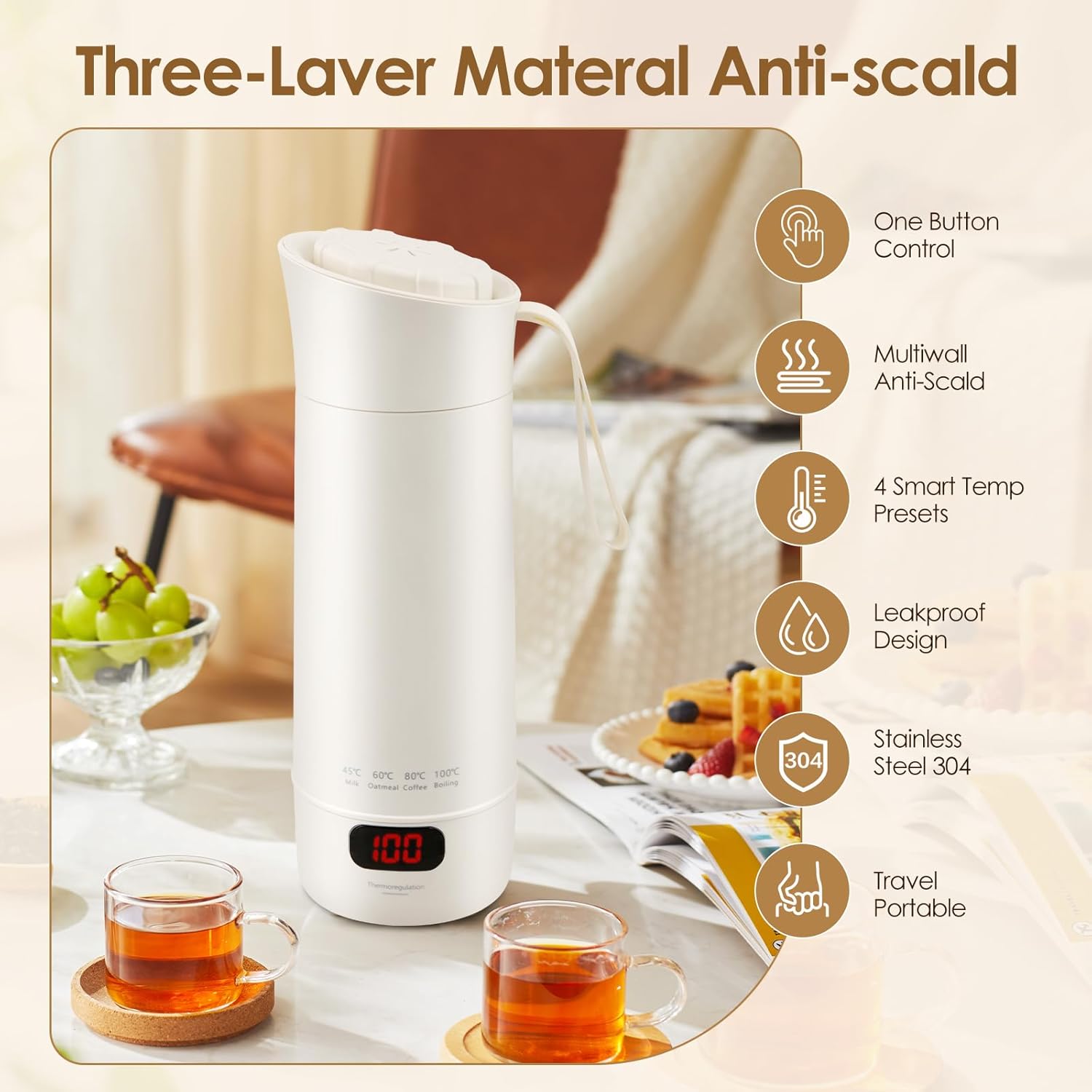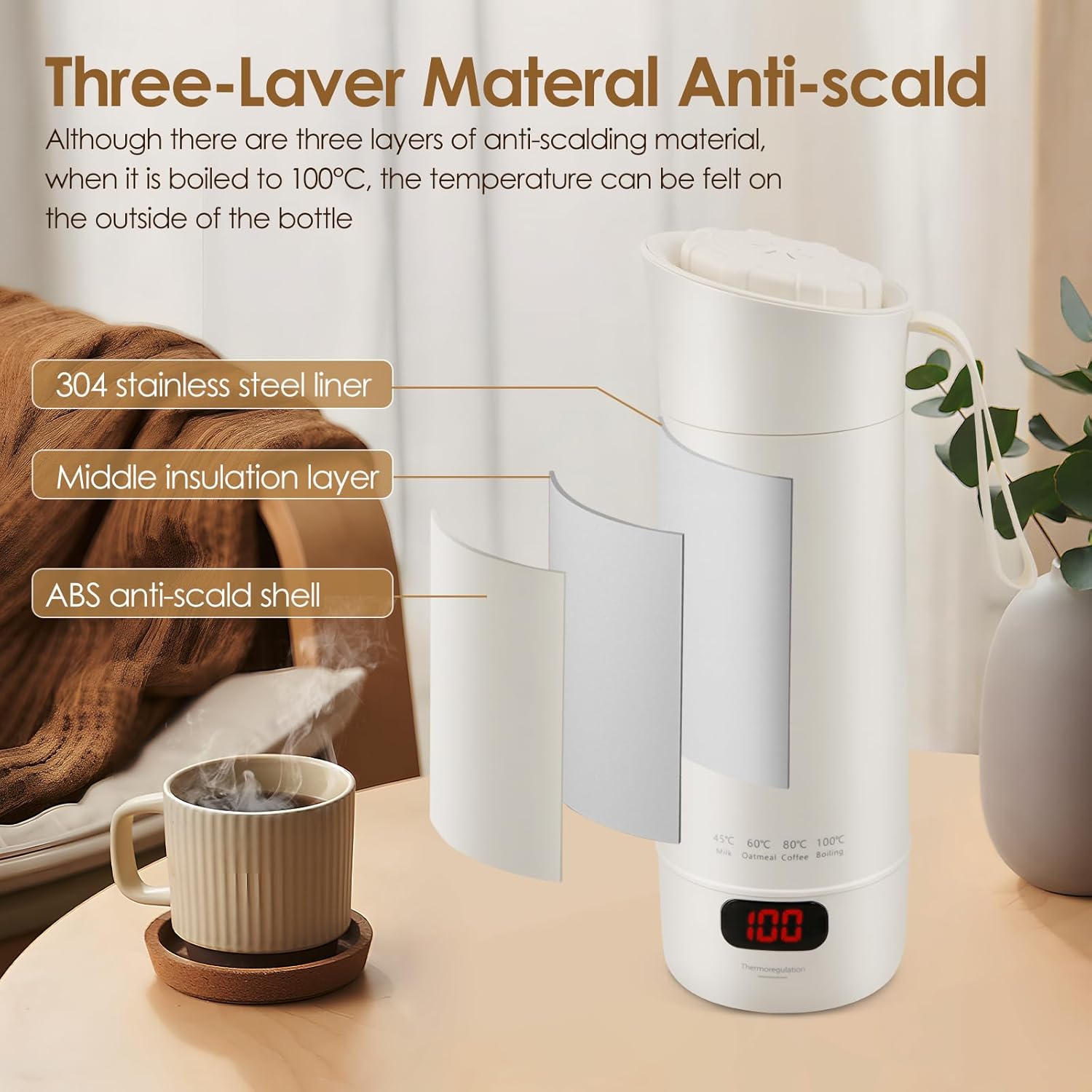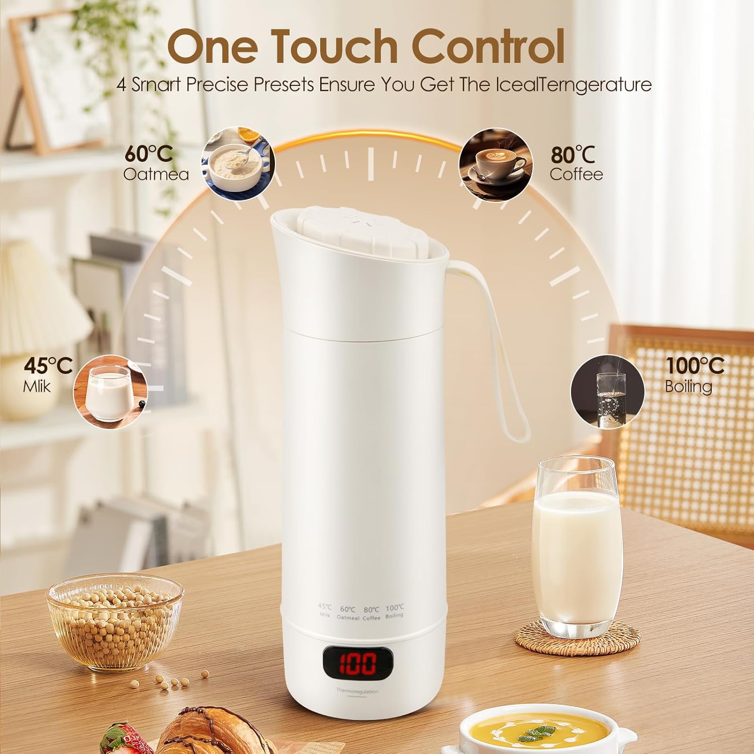 - 【4 Temperaturstufen + Display】Präzise einstellbare Temperaturen: 45°C (Babymilch), 60°C (Warmhalten), 80°C (Tee), 100°C (kochend). Klare LED-Temperaturanzeige – ideal für unterwegs. Perfekt als Wasserkocher mit Temperatureinstellung für Tee,