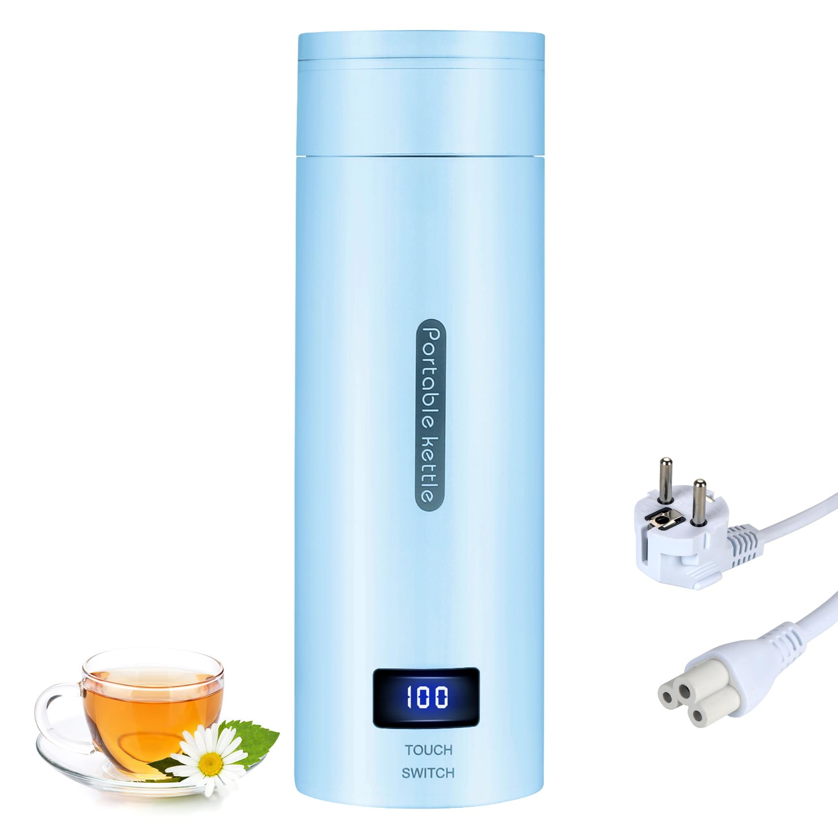 - đ„€ăEinfach zu tragenă Die Mini-Reisewasserflasche wiegt nur 0,5 kg und misst etwa 8,5 * 8,5 * 24,5 cm. Klein und tragbar, einfach zu verstauen und nimmt keinen Platz zum Herumtragen ein. Wenn der tragbare Wasserkocher erhitzt wird, kann er bis zu