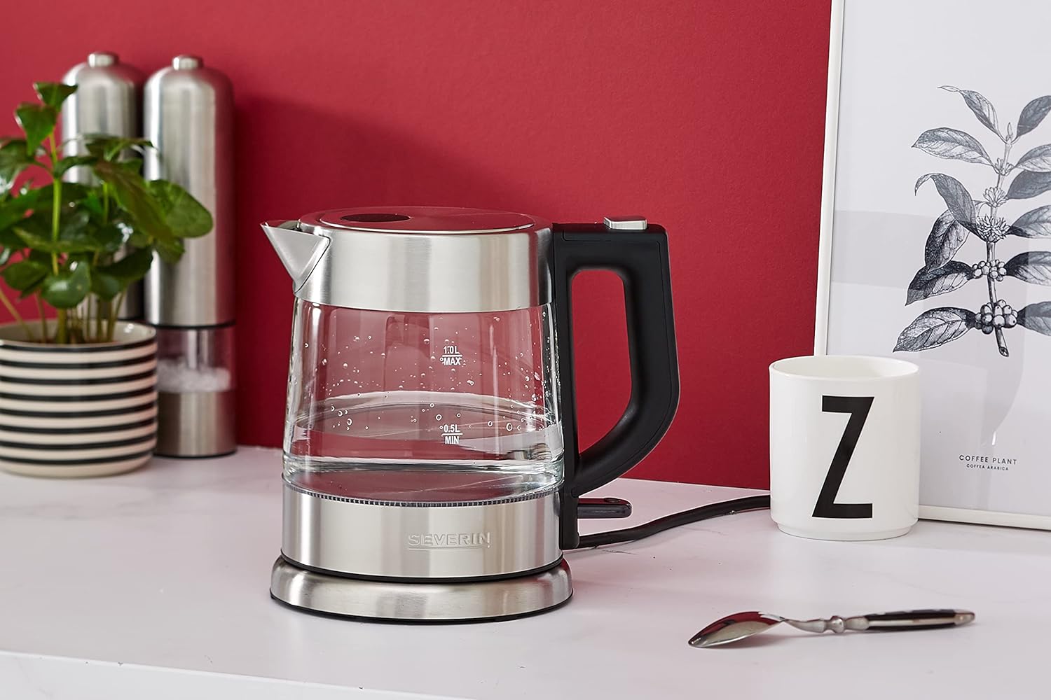 - Details: SEVERIN Glas Wasserkocher mit Kalkfilter, Wasserkocher aus Glas und Edelstahl, durch Edelstahl verdecktes Heizelement, Artikelnr. 3468
